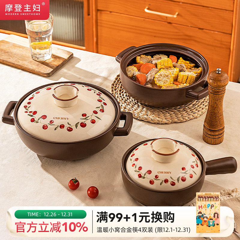 摩登主妇砂锅煲汤家用燃气灶专用耐高温干烧不裂陶瓷锅浅口小砂锅