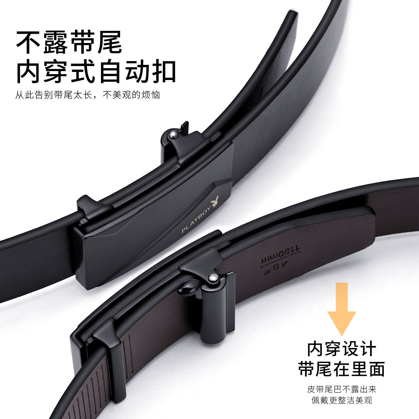 花花公子腰带男2025新款真皮无牙内扣裤带年轻人黑色牛皮潮流皮带