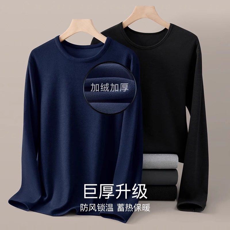 中高领保暖内衣男士加绒加厚套装大码德暖绒秋衣秋裤打底棉毛衫冬
