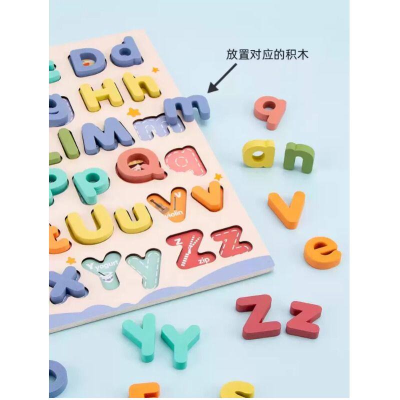 英文字母拼图积木儿童大小写拼板早教益智宝宝木制玩具形状立体