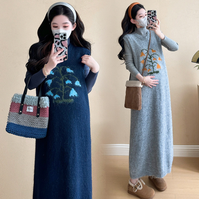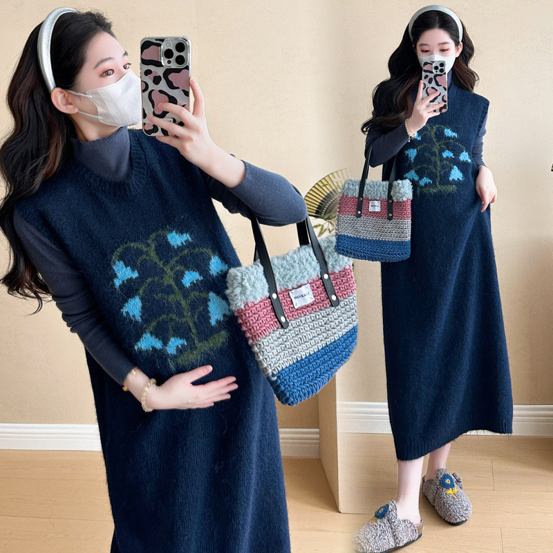 婧麒孕妇装秋装2025新款连衣裙时尚洋气时髦孕妇背心裙子长款套装