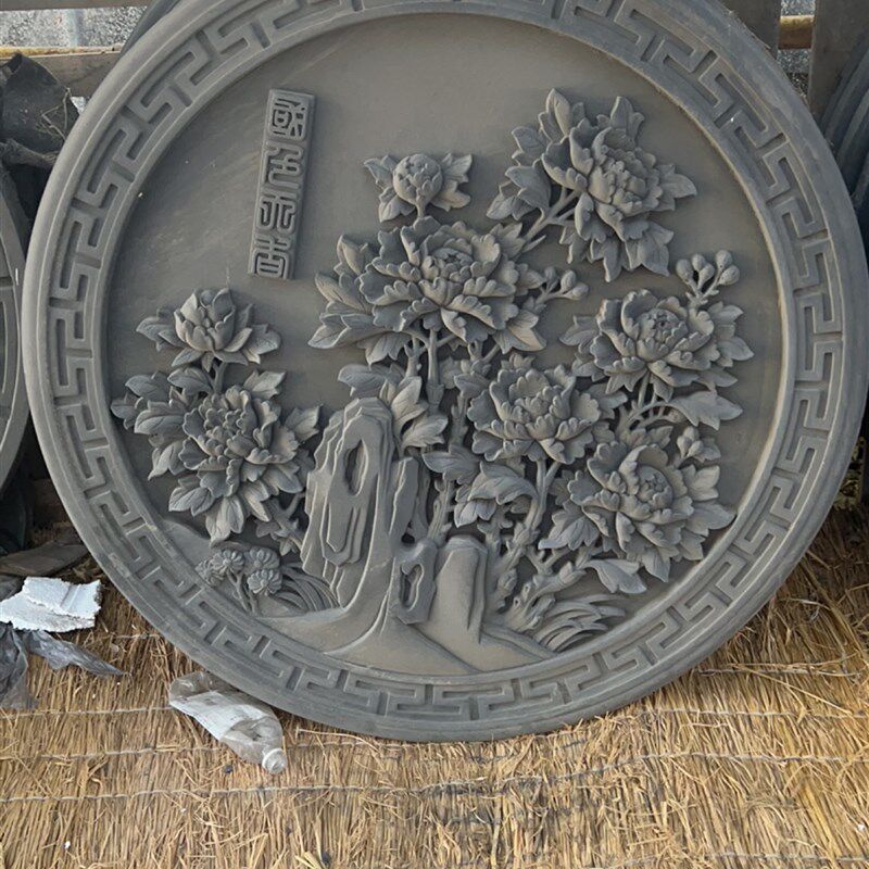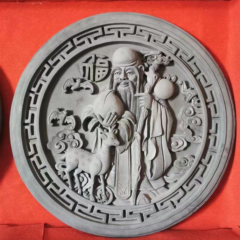 仿古砖雕圆形福字砖雕中式影壁墙背景墙装饰挂件围墙挂件砖雕浮雕