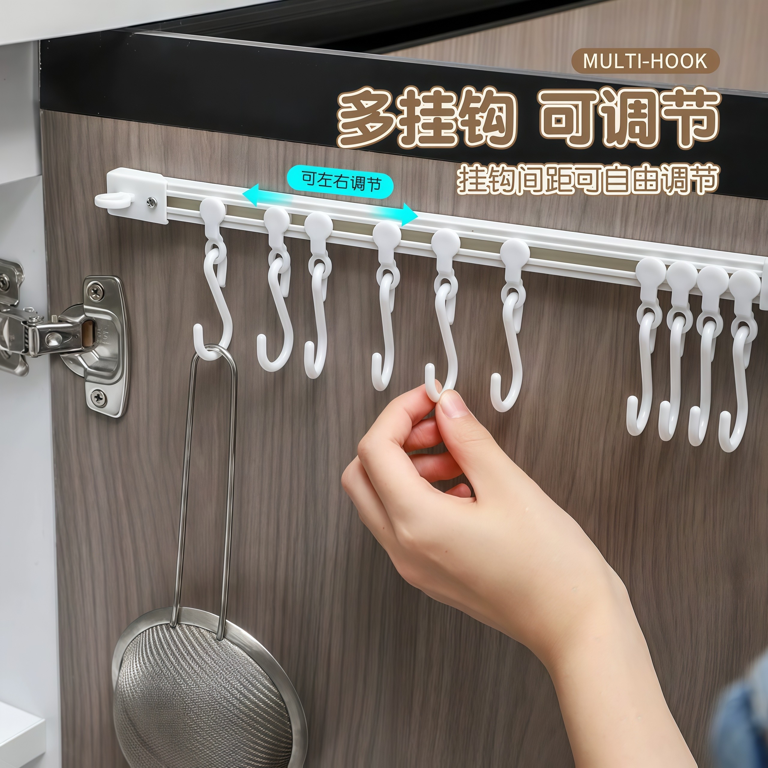 厨房收纳滑动轨道挂钩柜门收纳挂钩神器免打孔橱柜门后收纳置物架