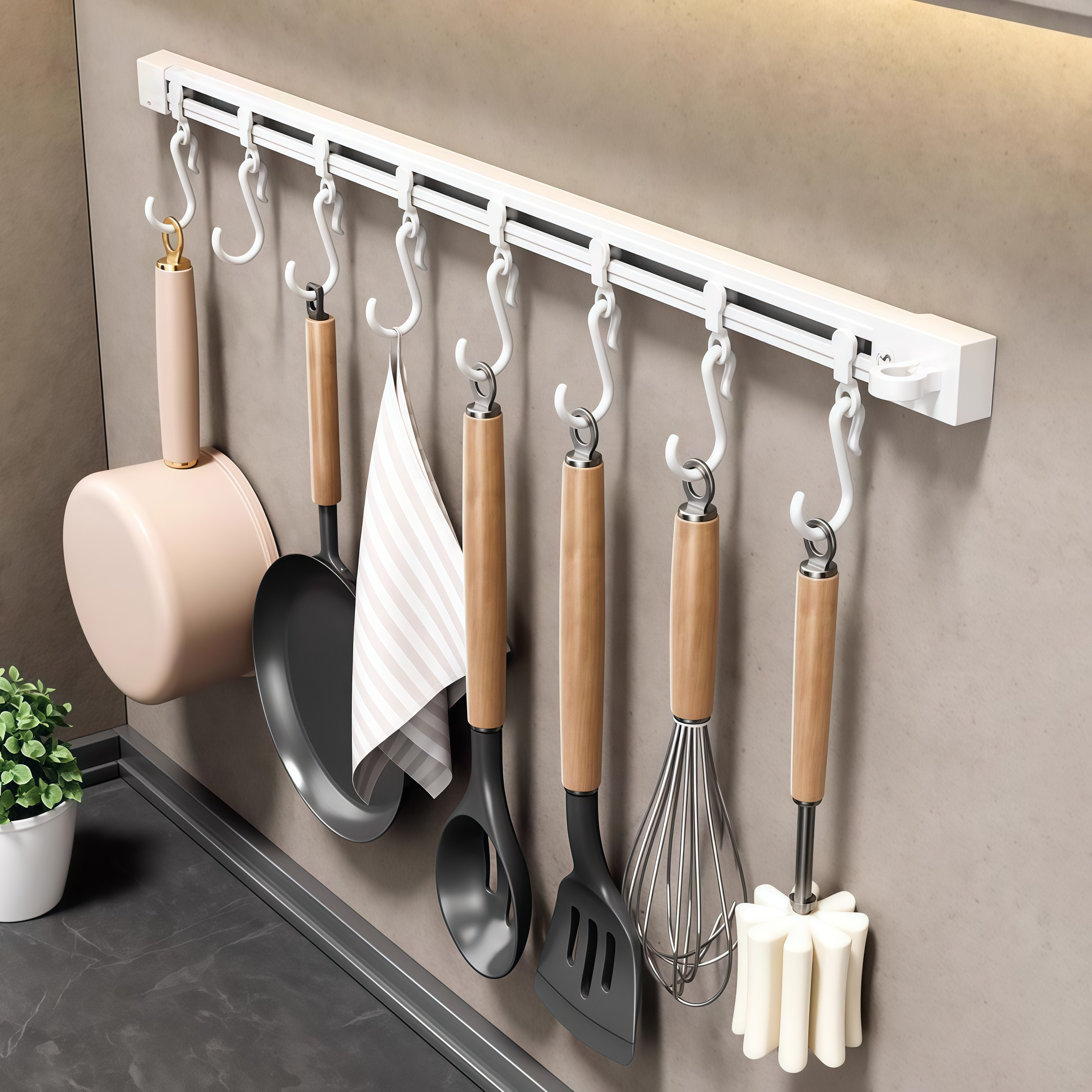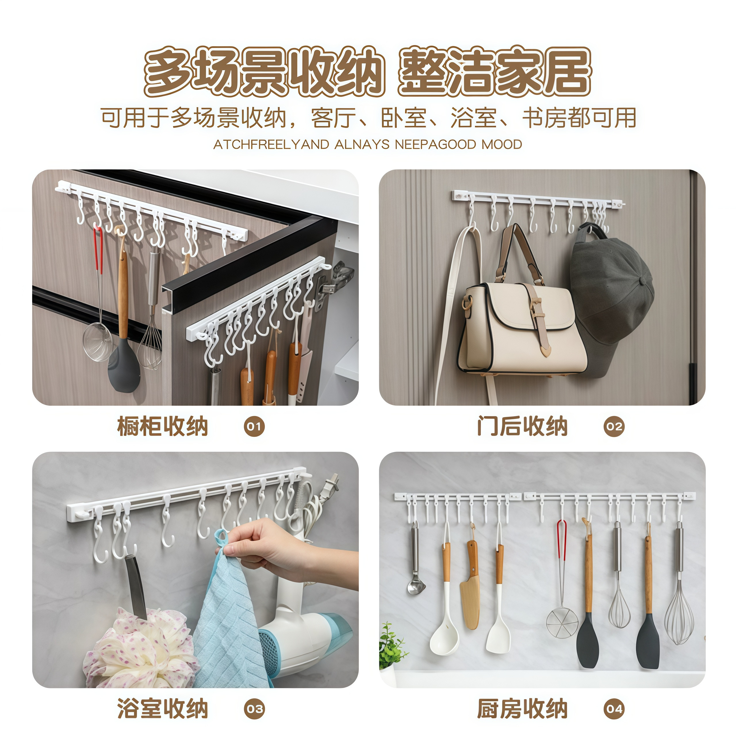 橱柜门后挂钩一排可滑动轨道免打孔粘挂杆神器勺子铲子厨具收纳架
