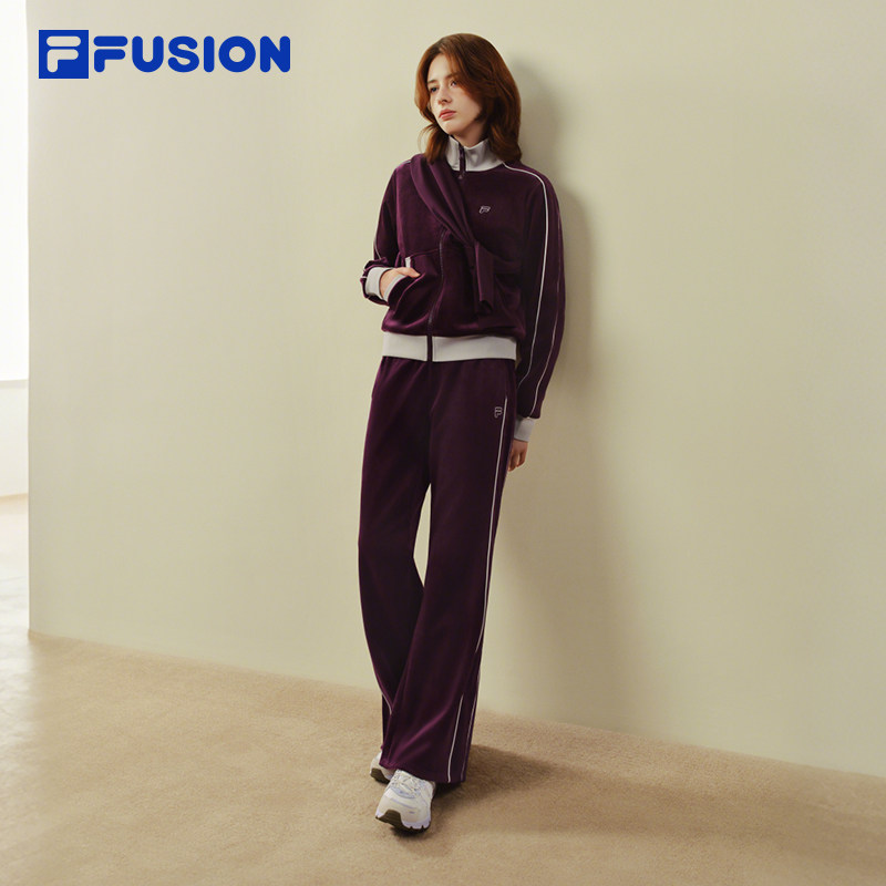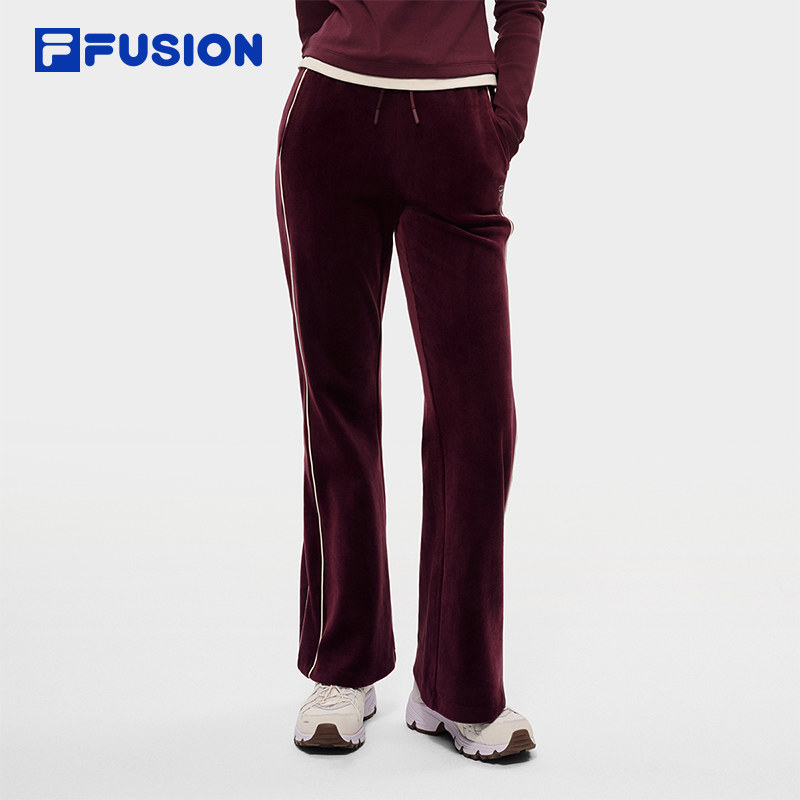 FILA FUSION斐乐潮牌针织长裤女2026春新年款时尚休闲红色直筒裤