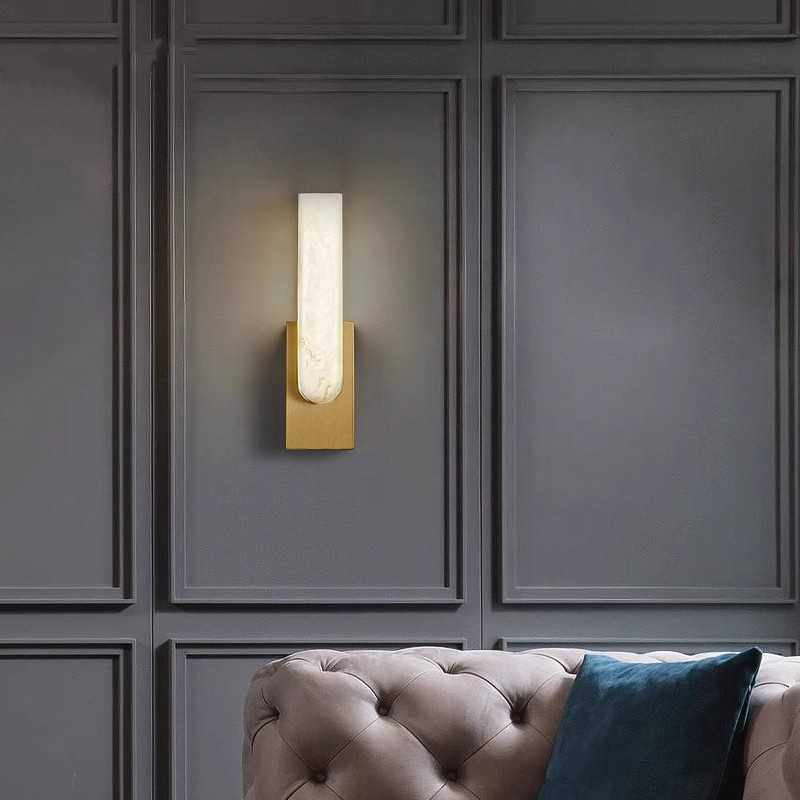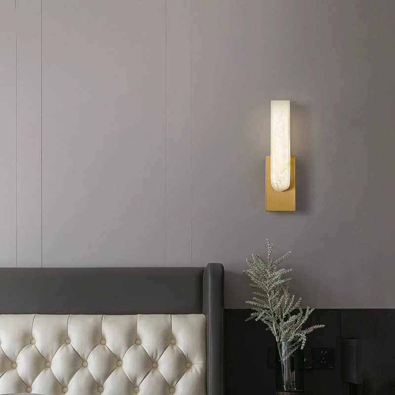 云石壁灯现代简约客厅背景装饰灯长方形过道灯全铜轻奢卧室床头灯
