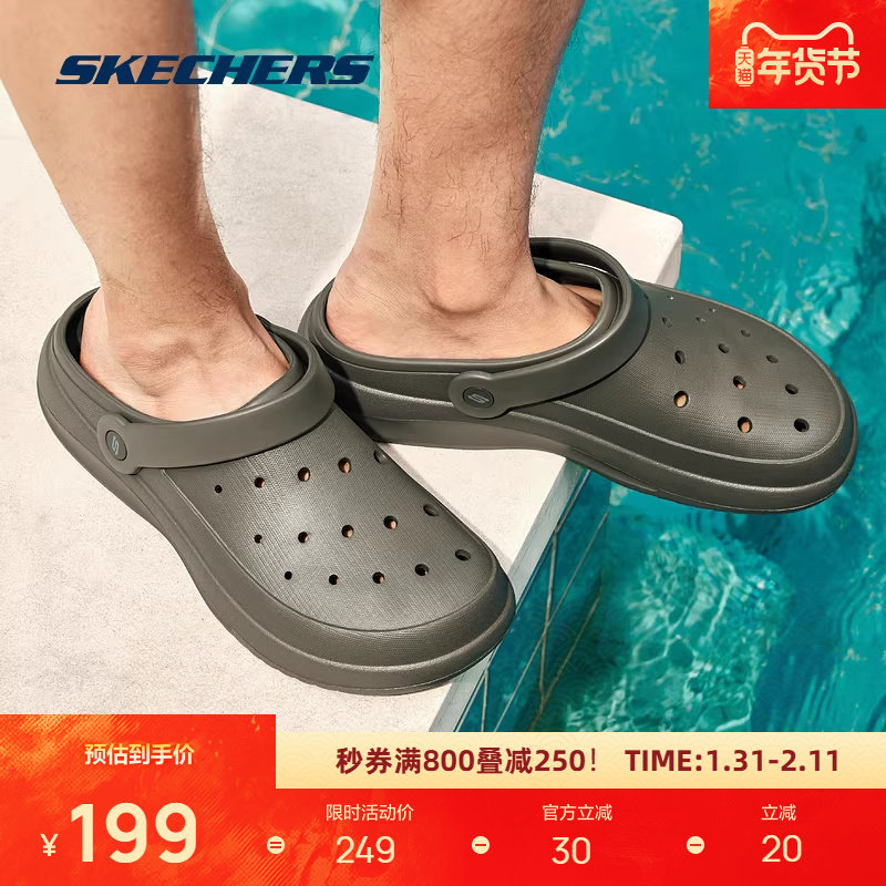 斯凯奇男鞋休闲运动沙滩鞋凉鞋凉拖轻质透气舒适百搭时尚洞洞鞋