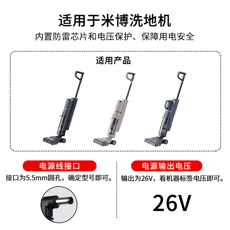 适用于米博洗地机电源适配器V7Plus/Q7Plus无布吸拖洗扫地机通用方太充电器26V0.6A/0.8A插头