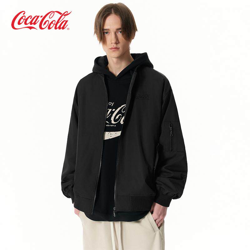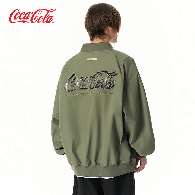Coca-Cola可口可乐 渐变格纹贴布绣拉链口袋美式飞行员外套夹克