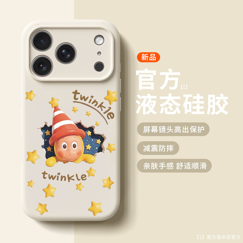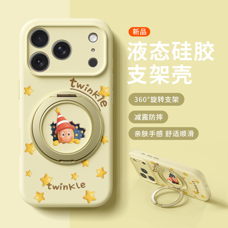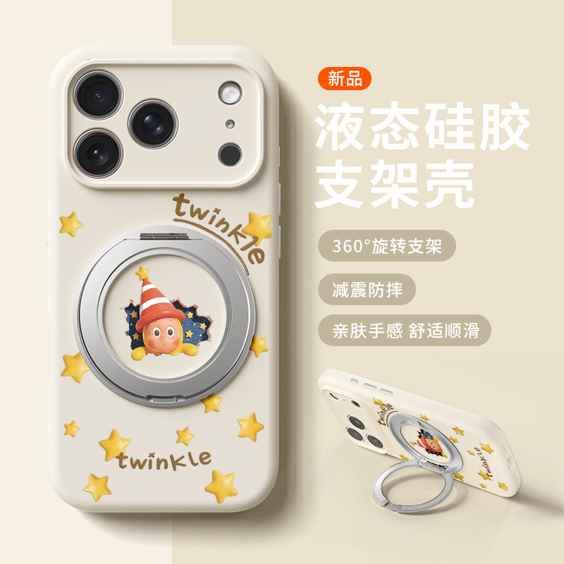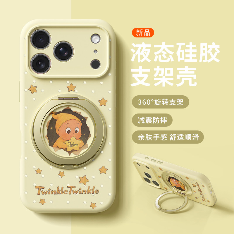 奶萌星空星星人适用苹果17promax手机壳新款iphone16pro可爱女款15卡通14防摔液态硅胶软壳360旋转支架保护套