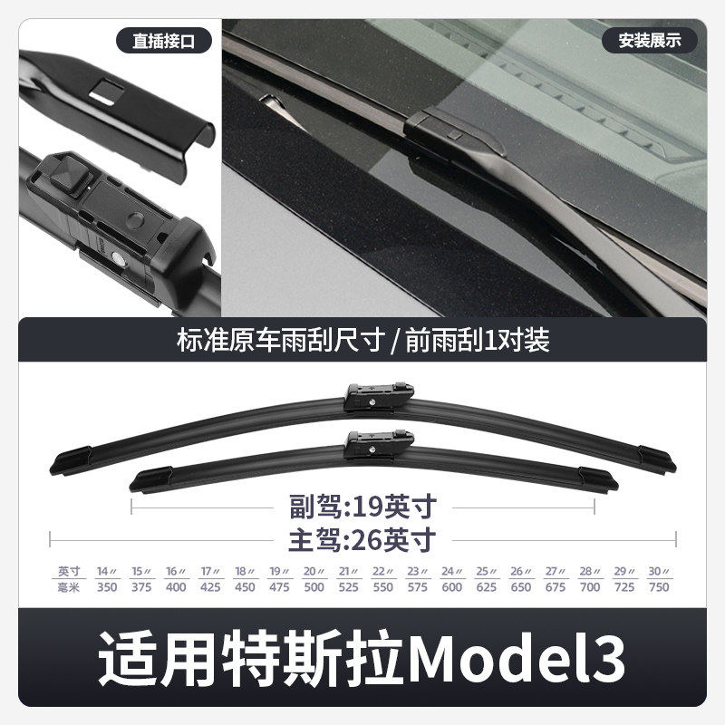适用特斯拉焕新版Model3雨刮器原装原厂静音胶条配件毛豆无骨雨刷