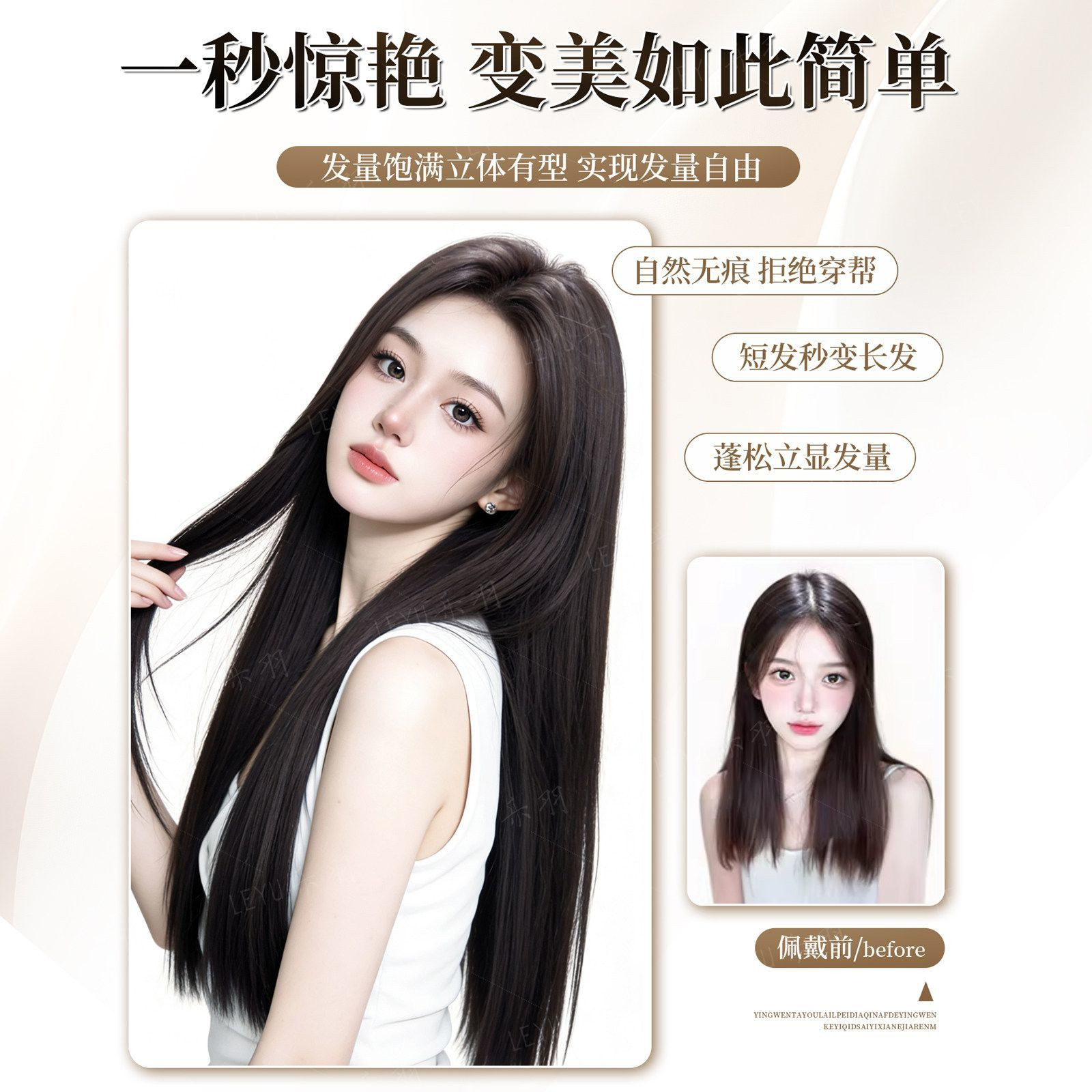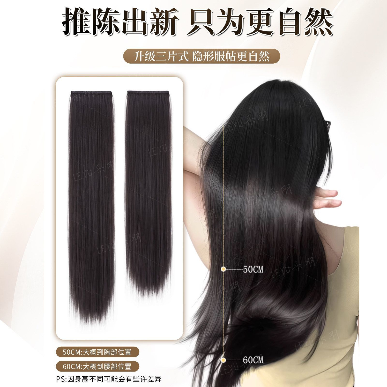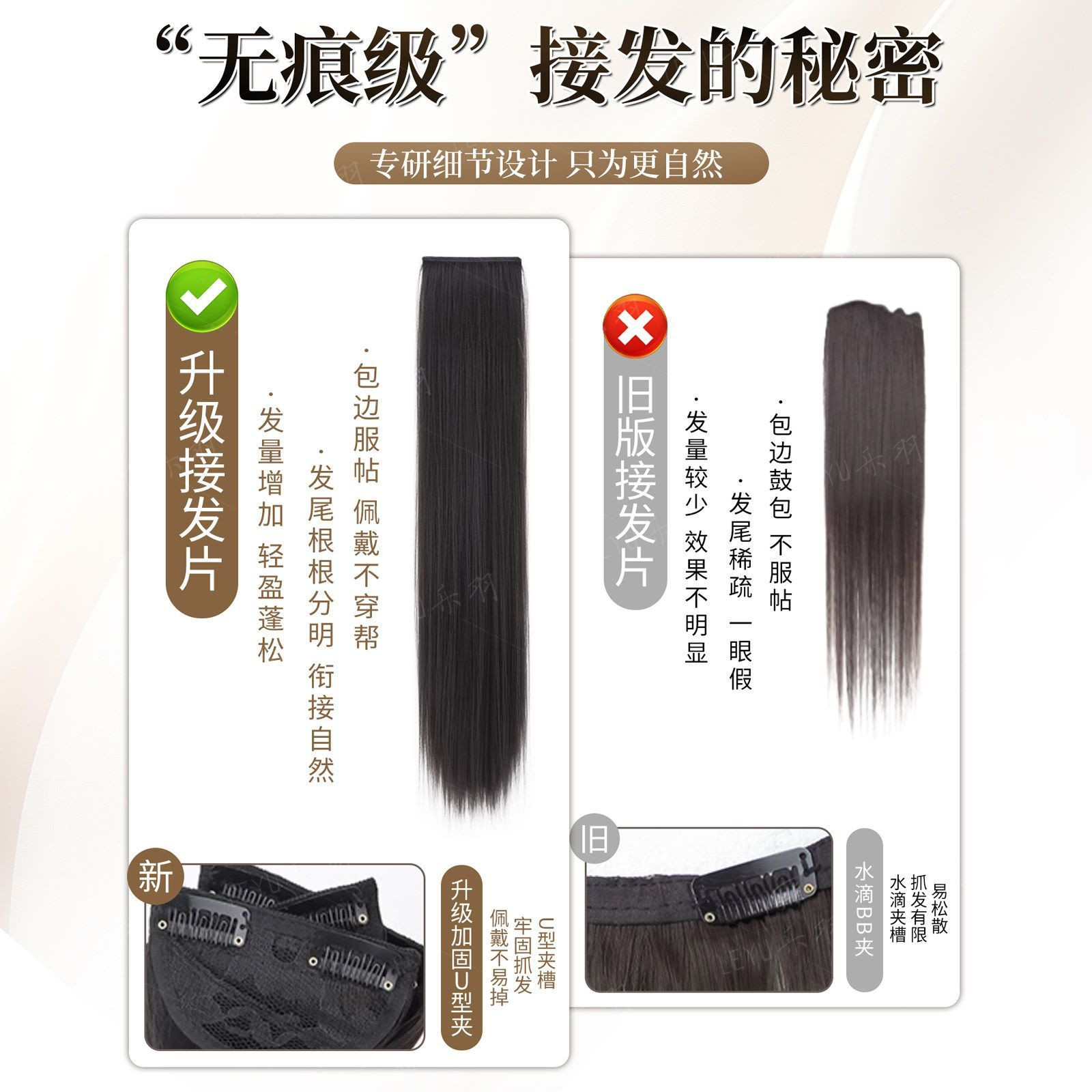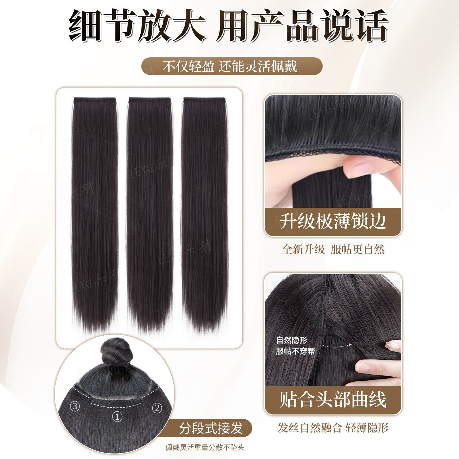 【增接垫三合一】假发片女三片式仿真隐形无痕手织包边直发接发片