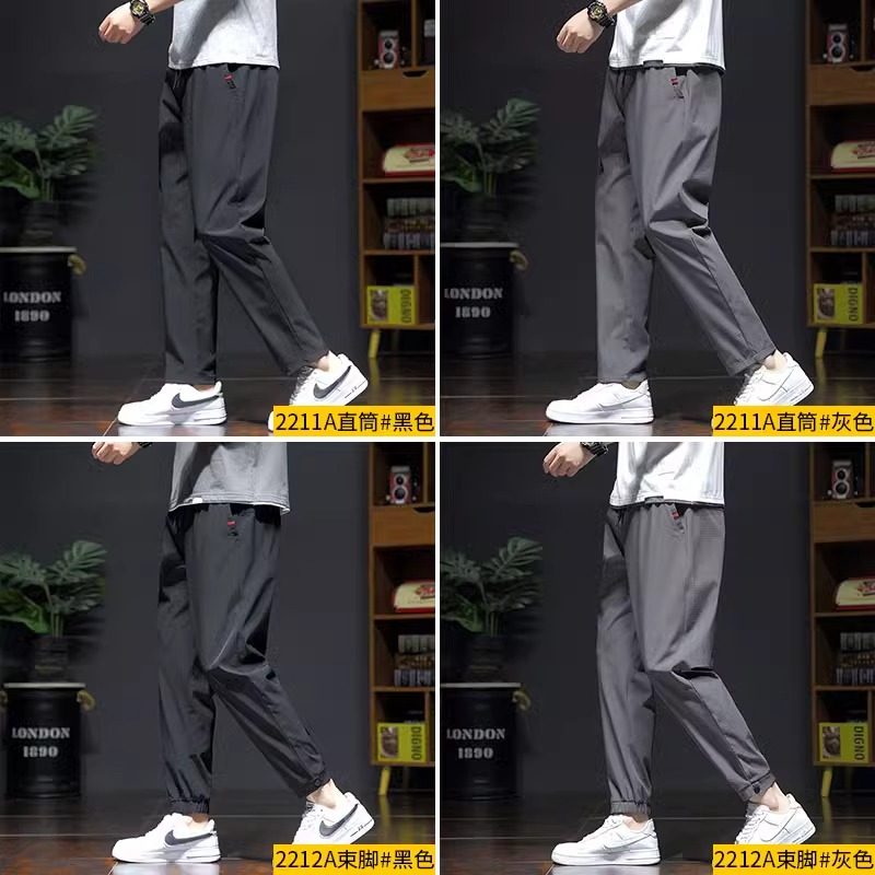 啄木鸟男士2025夏季冰丝宽松运动直筒裤新款速干长裤子青少年薄款