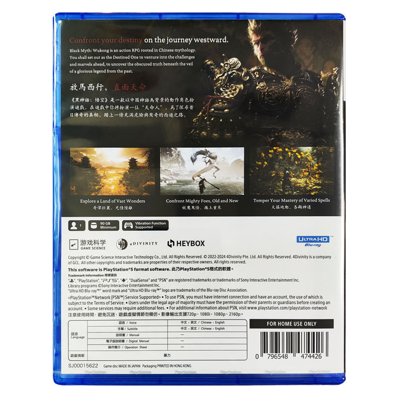 香港直邮 PS5游戏光盘 港行中文原封 无明信片 黑神话悟空 首发带豪华版升级 WuKong PS5游戏 现货