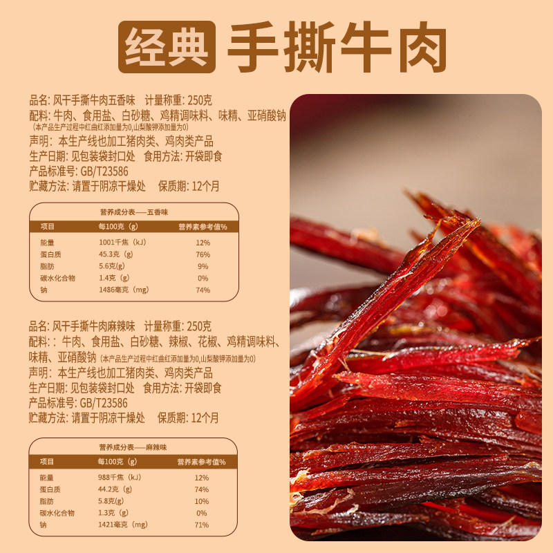 思奇香四川特产手撕牛肉五香麻辣风干手撕牛肉干干牛肉条解馋食物