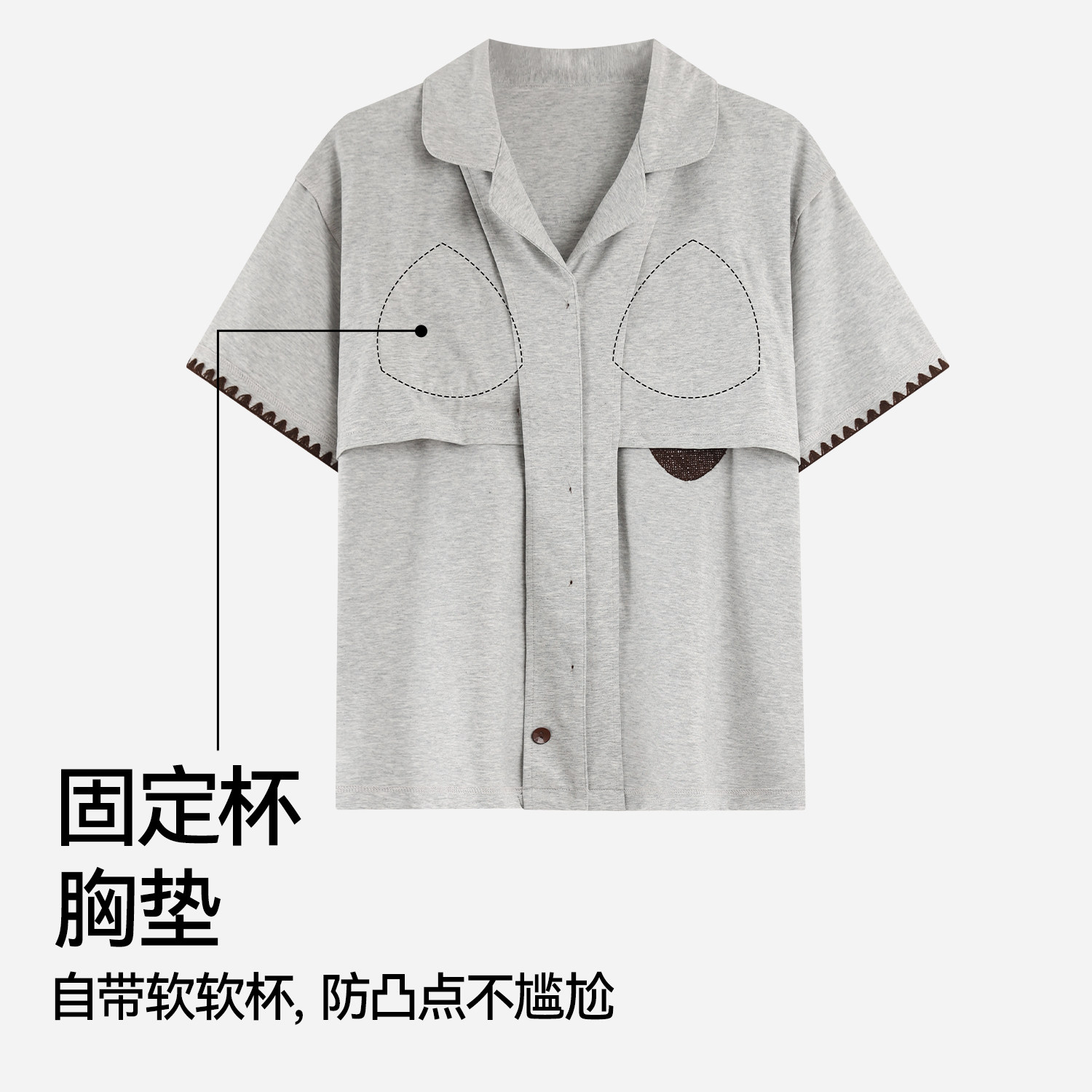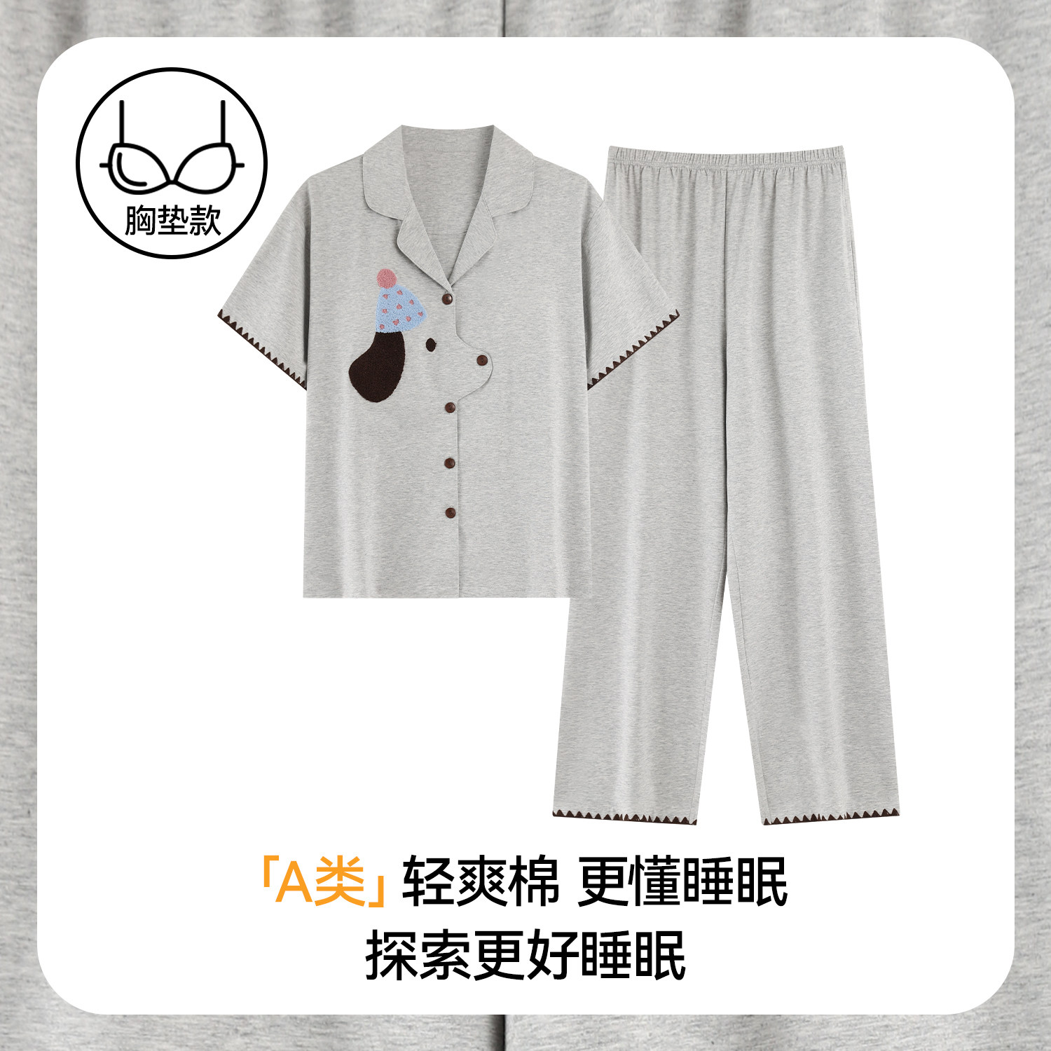 都市丽人睡衣女款纯棉夏季新款甜美卡通家居服短袖长裤套装带胸垫