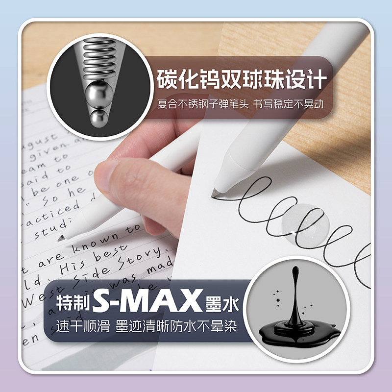 MENIU米扭中性笔按动式躲躲笔双珠子弹头0.5mm黑笔猫猫笔初中高中学生考试刷题笔学习搭子套装速干顺滑