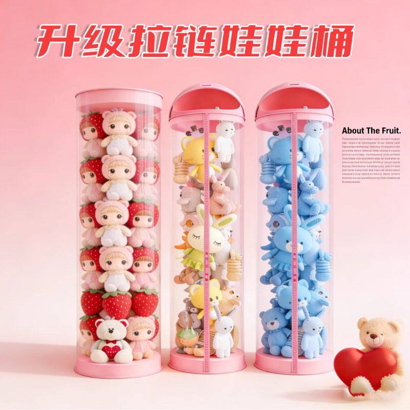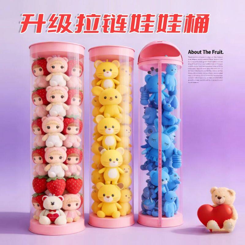 毛绒娃娃收纳桶大直径透明圆柱筒儿童公仔玩偶收纳神器客厅年货节