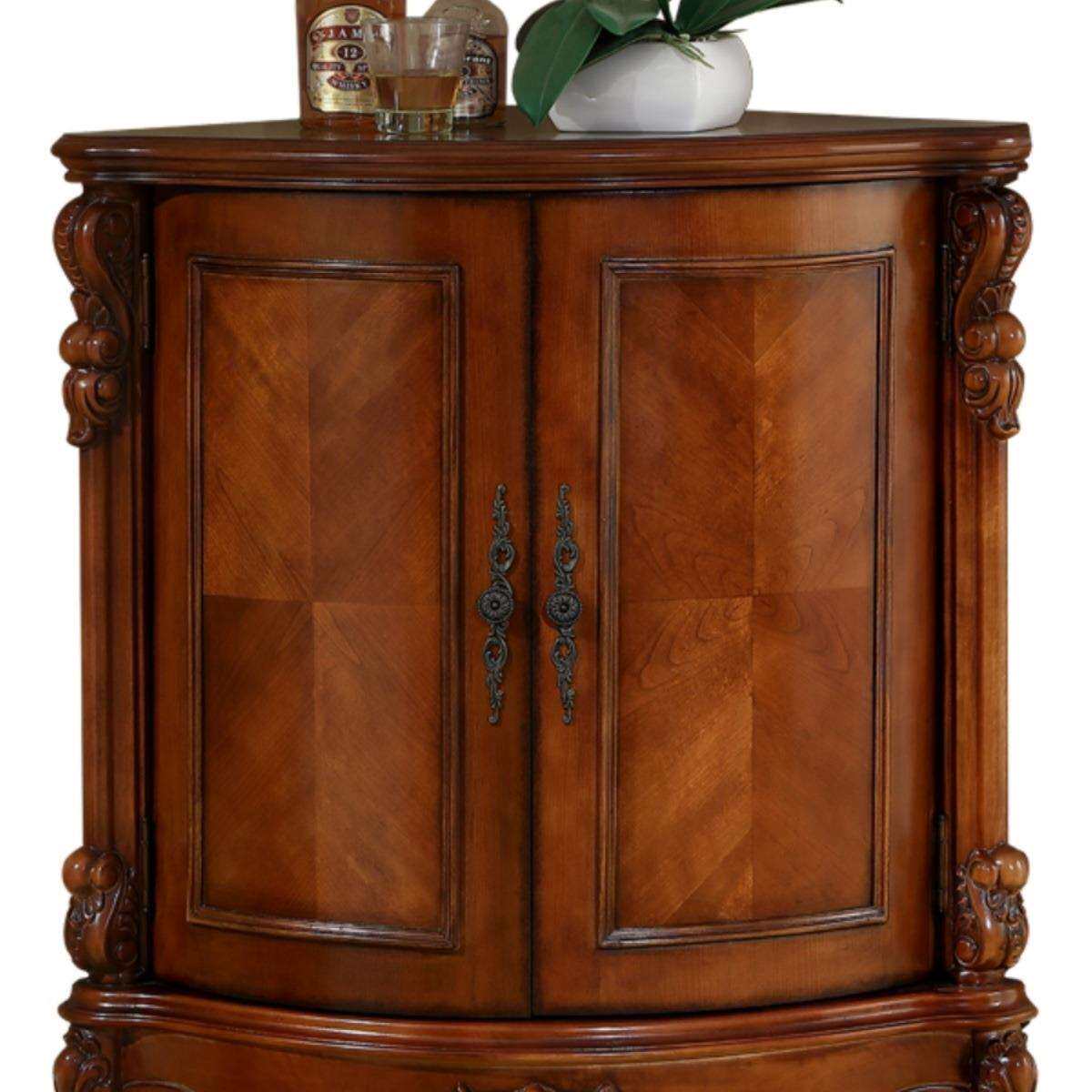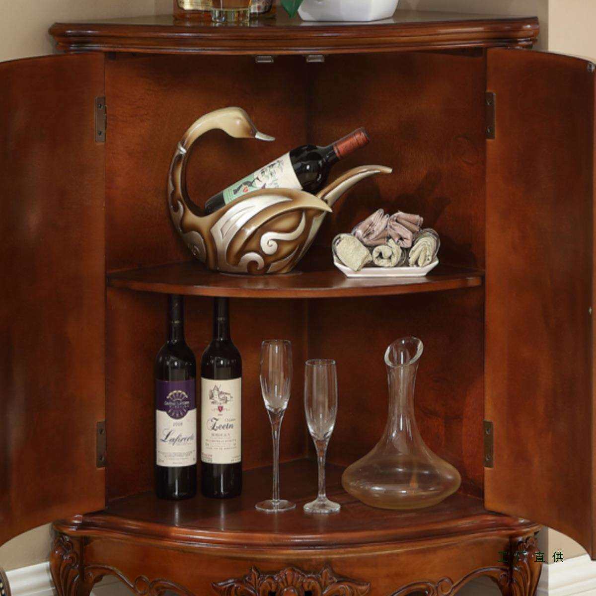 美式复古墙角柜实木矮柜客厅家具转角储物酒柜扇形三角柜大小户型