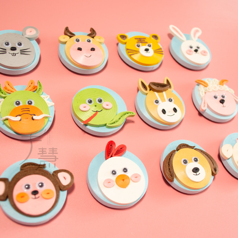 卡通十二生肖衍纸儿童学生亲子简单益智趣味冰箱贴胸针手工材料包