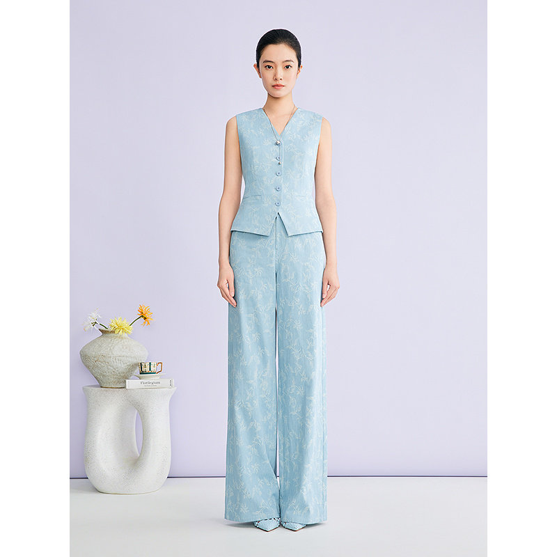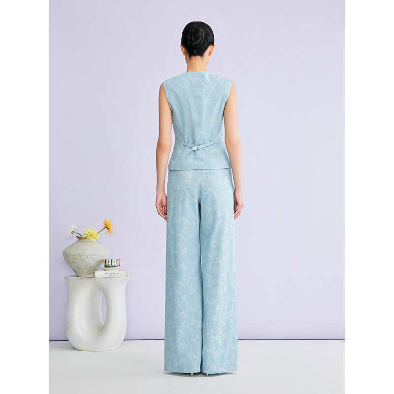【刘涛同款】YINER音儿2026春季新款优雅通勤重工提花直筒牛仔裤