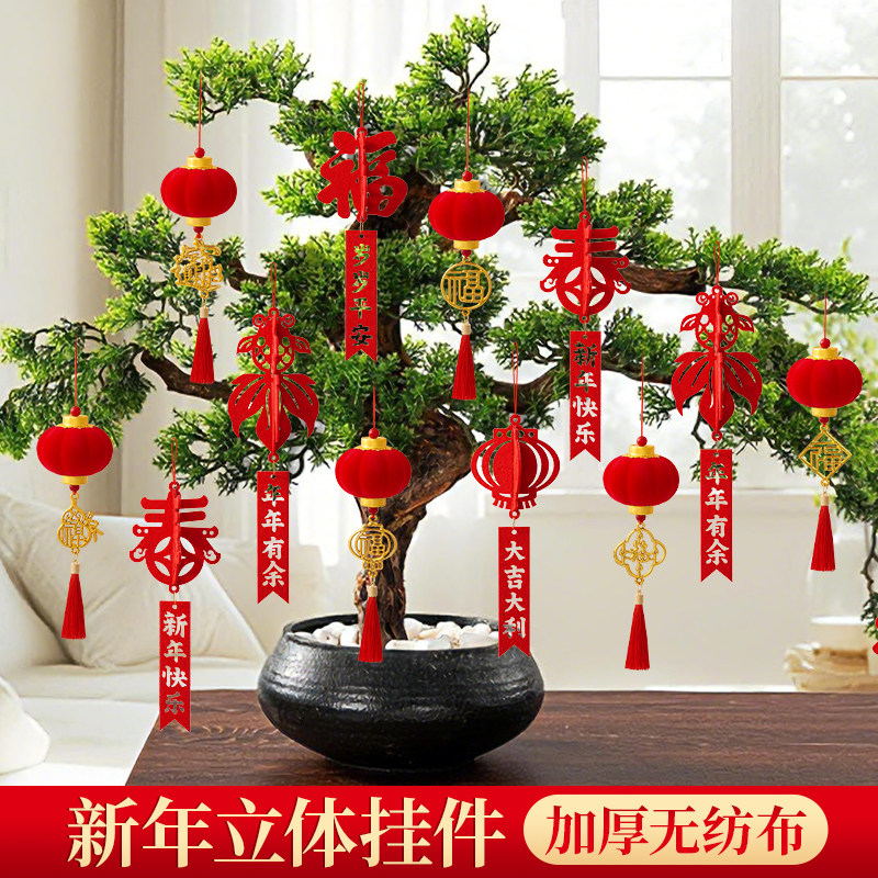 新年小红灯笼2026马年新款盆栽挂饰装饰红色树上挂件院子户外布置