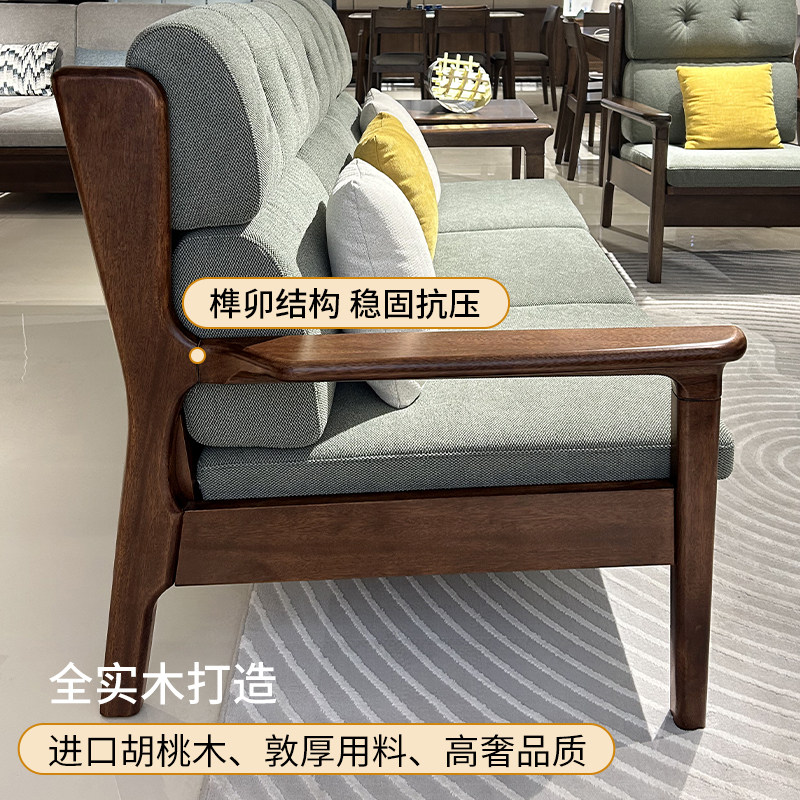 全实木沙发客厅家用现代简约胡桃木组合小户型可拆洗单两三四人位