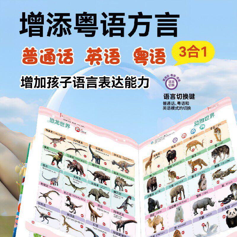 会说话的早教有声书0-7岁幼儿益智中英粤三语启蒙手指点读发声绘本幼儿语言表达启蒙认知触摸益智玩具一两岁婴幼儿童宝宝有声读物