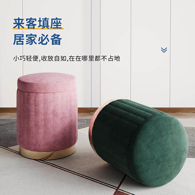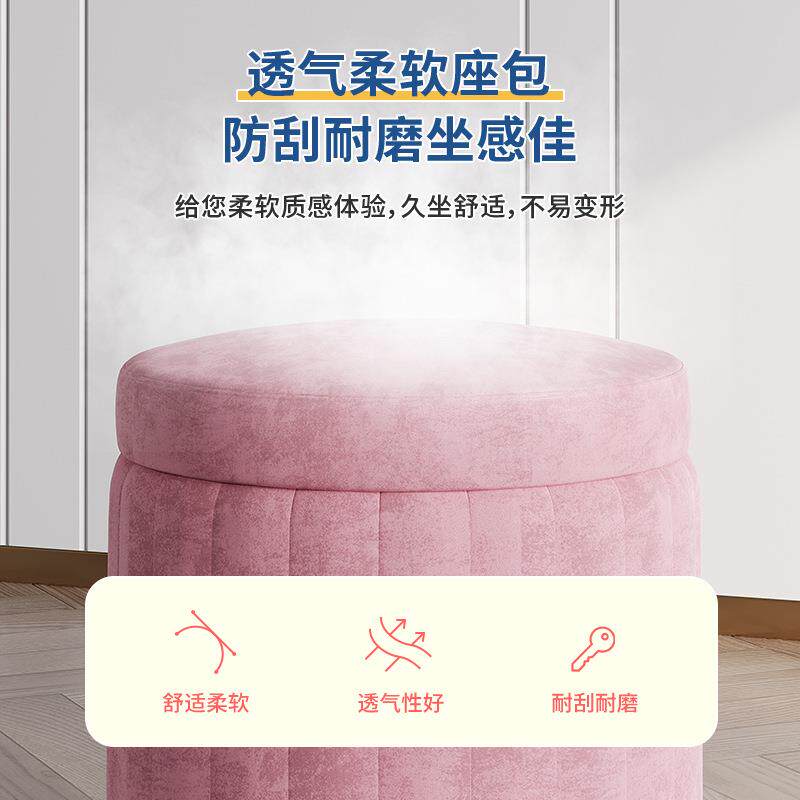 轻奢化妆凳卧室网红现代简约收纳储物小圆凳梳妆台椅子矮凳子坐墩