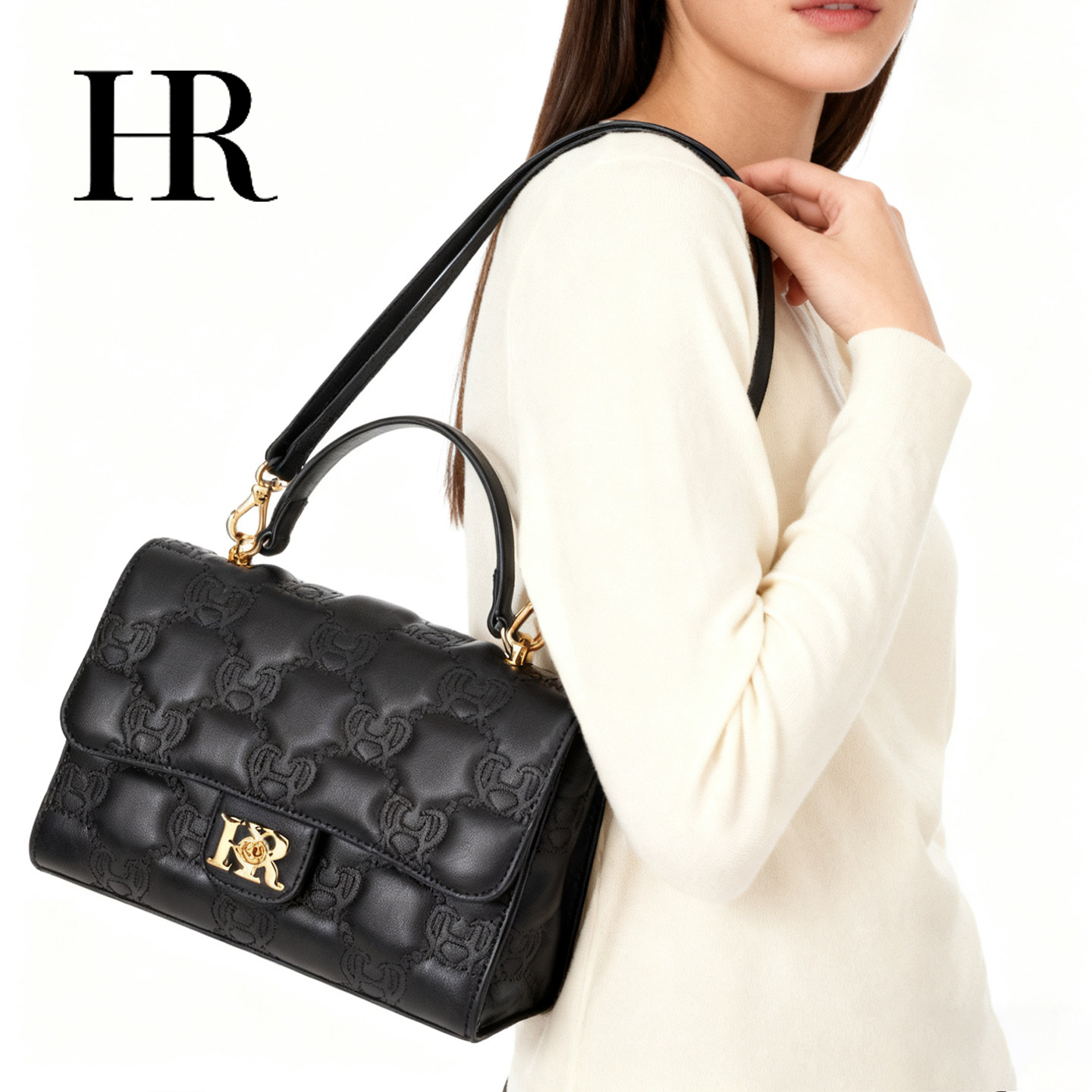 HR赫莲娜女包2025新款菱格链条包轻奢百搭女包单肩斜挎手提小方包