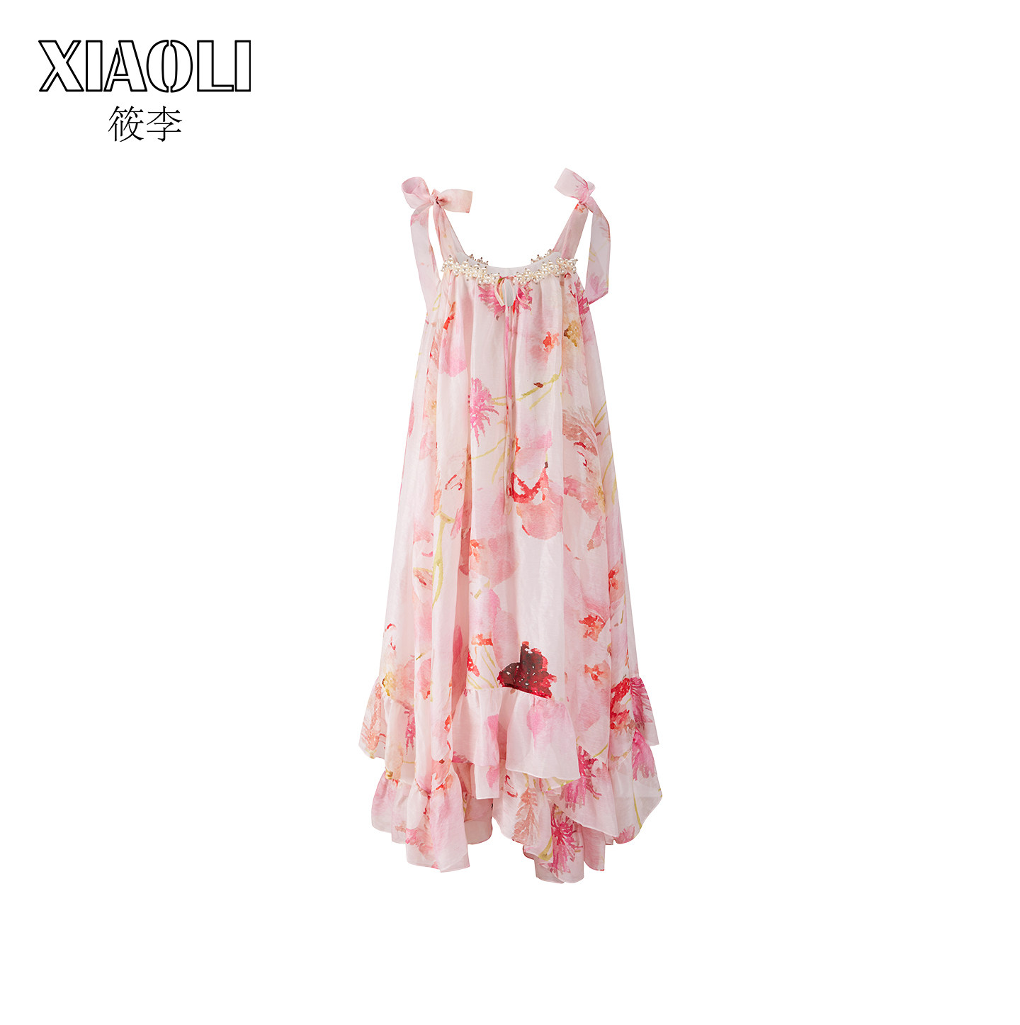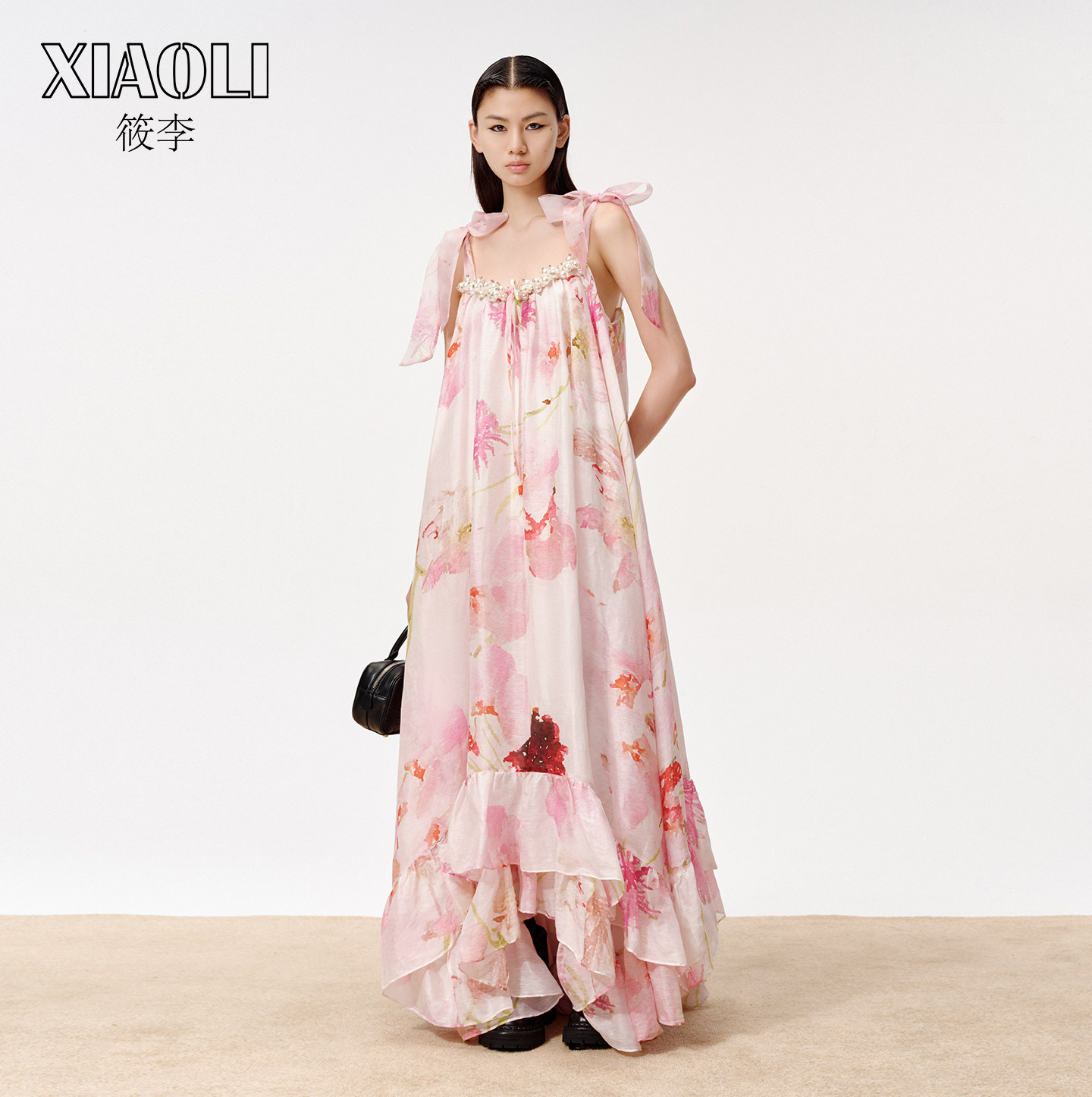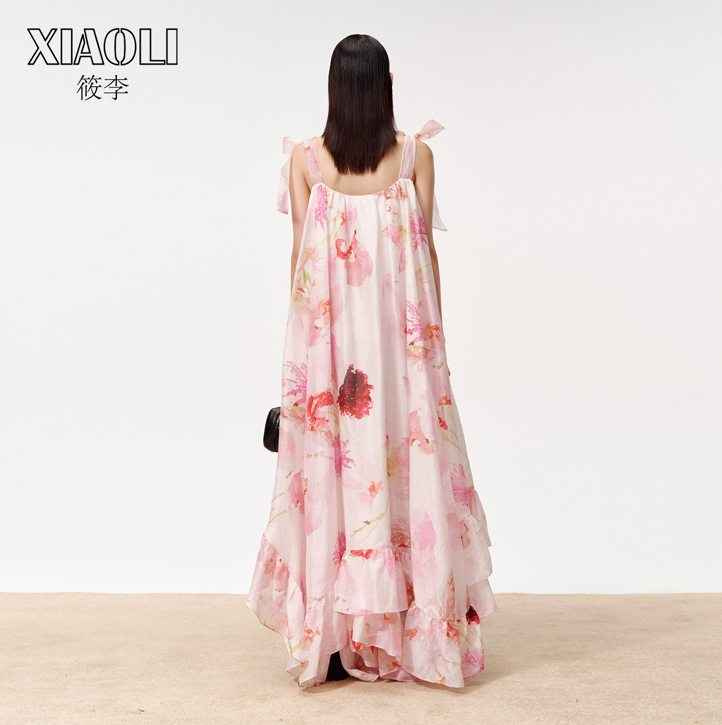 【XIAOLI筱李】淡水彩花卉印花优雅浪漫粉色长款连衣裙女春新品