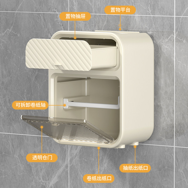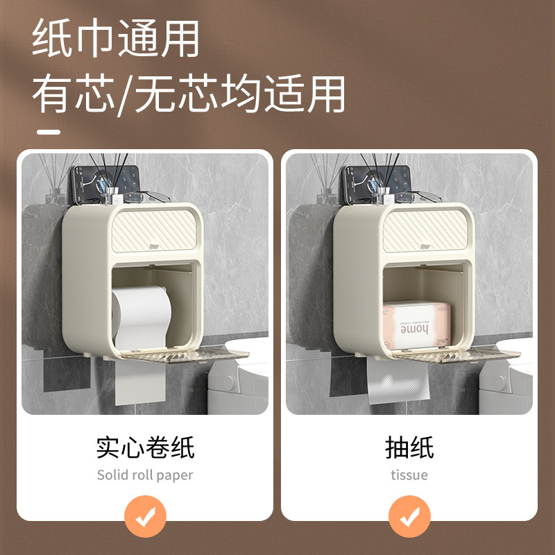卫生间厕所纸盒壁挂式纸巾盒免打孔防水卫生纸卷纸置物架多规格