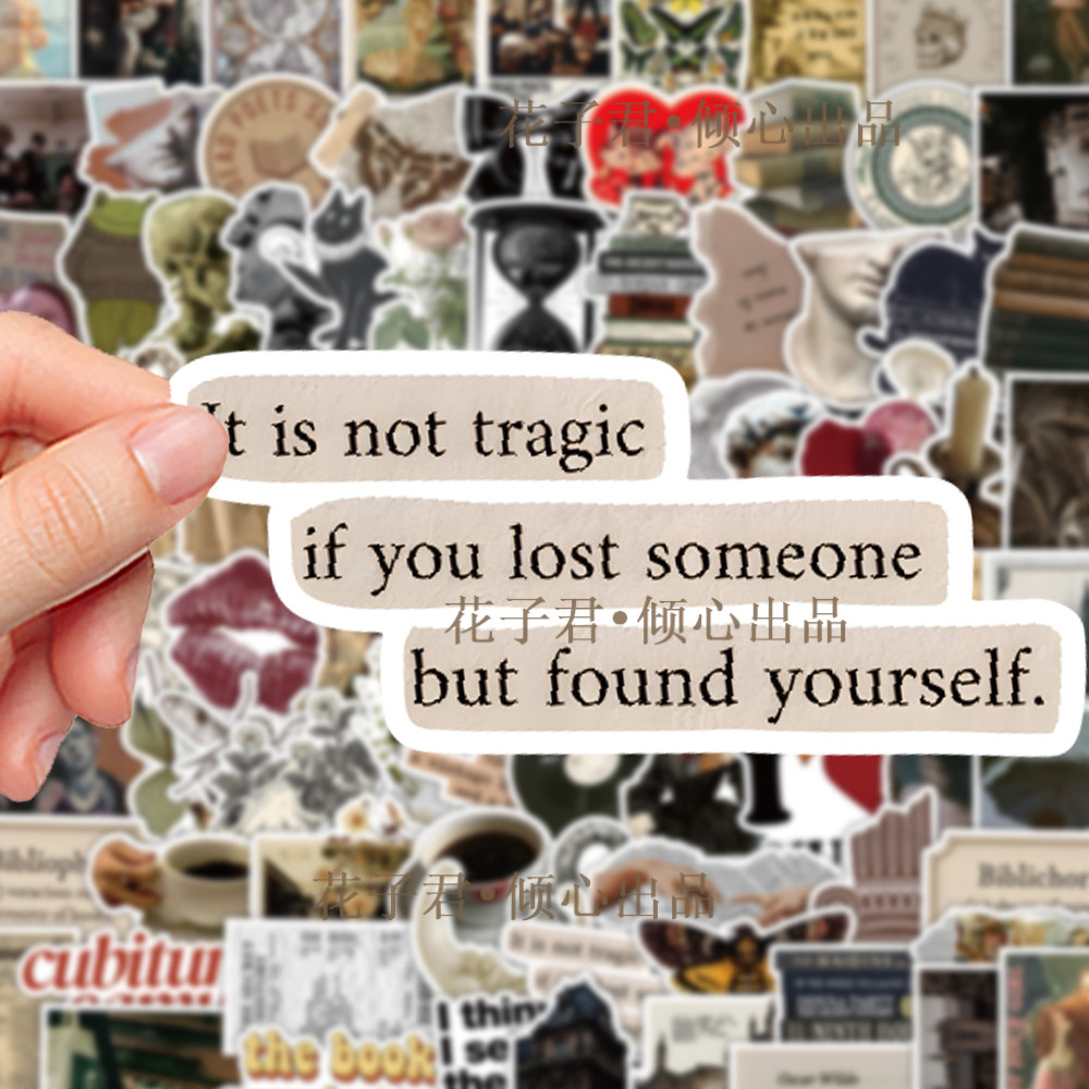 104张碎片文字贴纸美式复古报纸文艺行李箱防水手帐素材装饰贴画