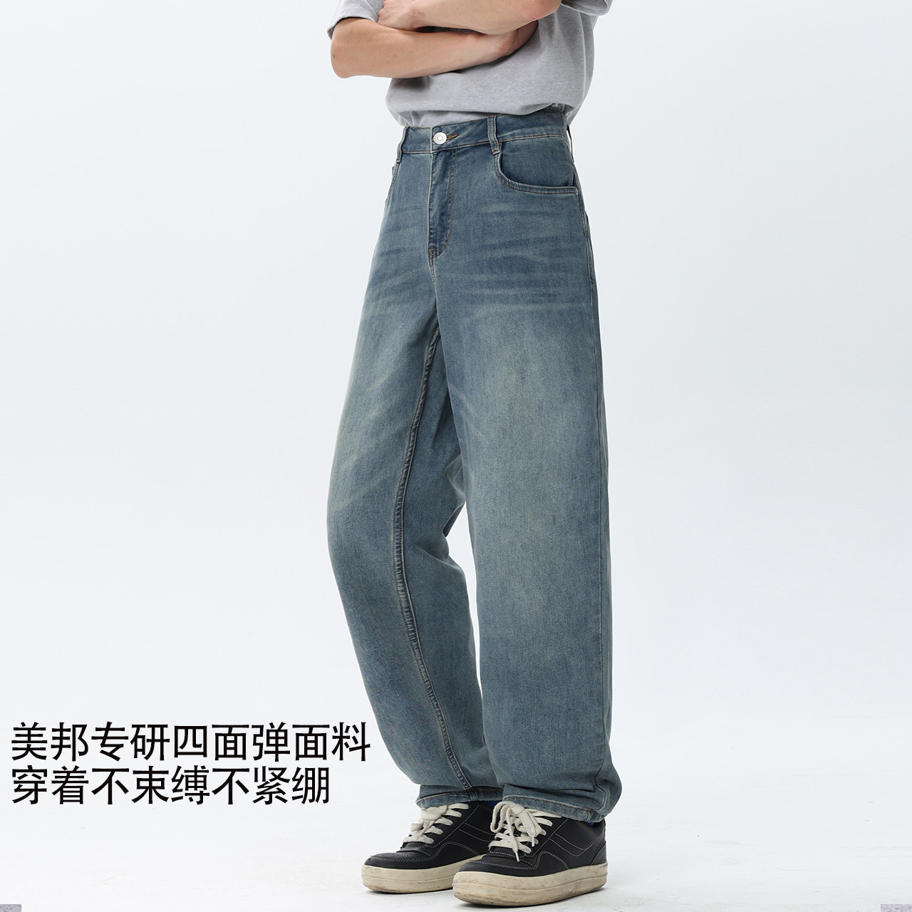 美特斯邦威牛仔裤男秋季新款舒适直筒潮流休闲水洗复古长裤潮