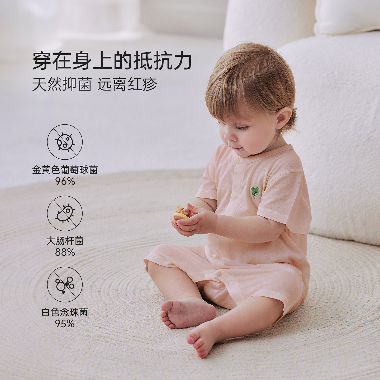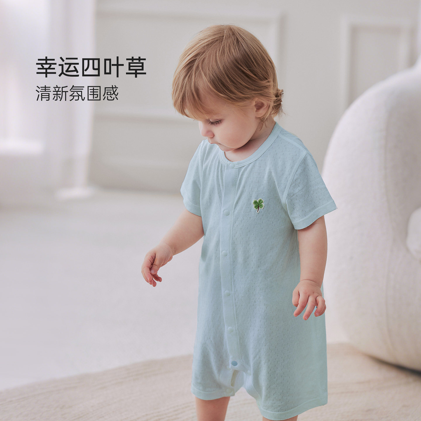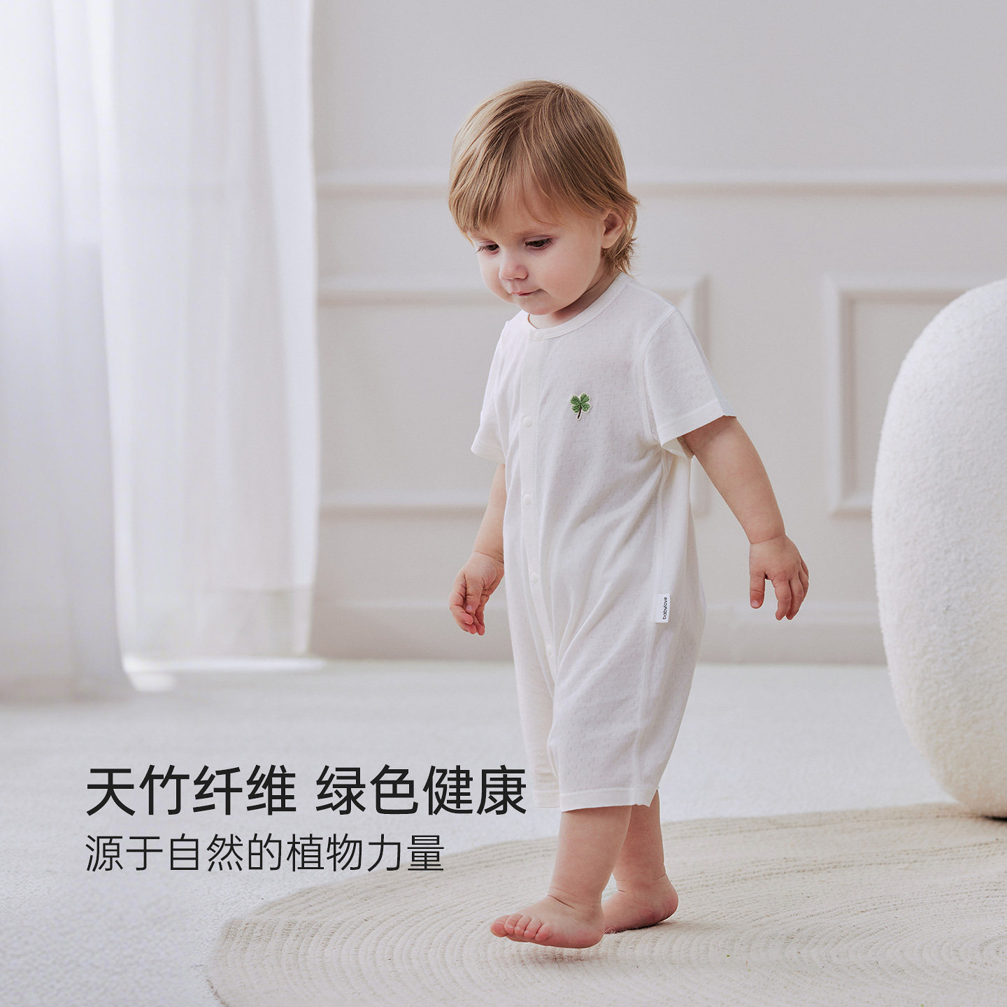 babylove婴儿连体衣夏季薄款短袖竹棉提花透气哈衣爬服宝宝衣服