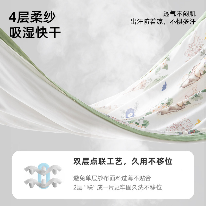 贝肽斯婴儿盖毯夏凉被竹棉纱布冰丝毯春夏宝宝儿童竹纤维空调被