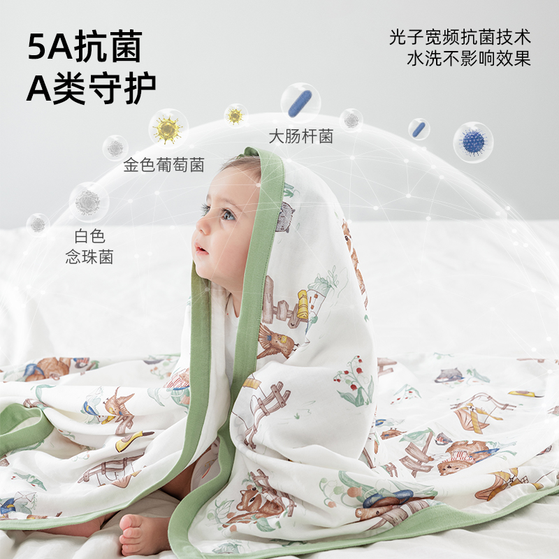 贝肽斯婴儿盖毯宝宝专用小毯子a类纱布小被子新生儿薄款四季通用