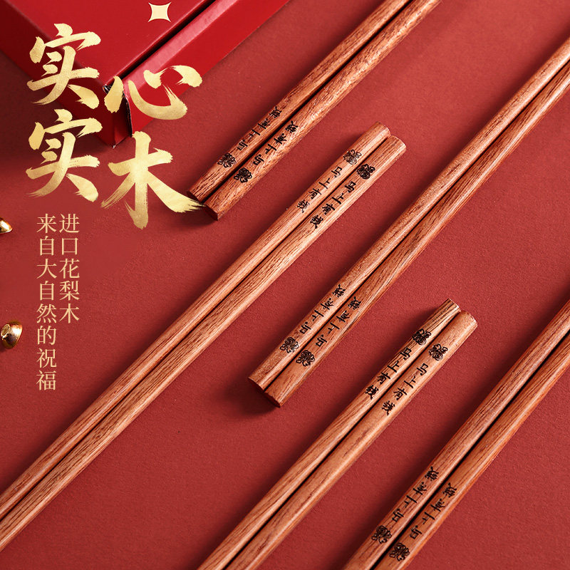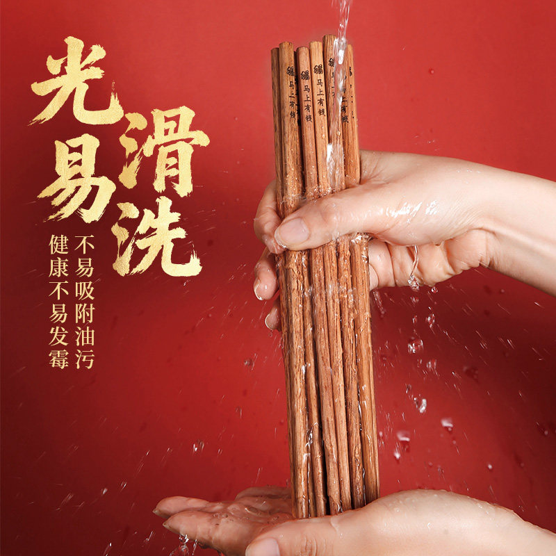 筷子家用高档抗菌防霉实木无漆无蜡轻奢高级感豪华福字鸡翅木筷子