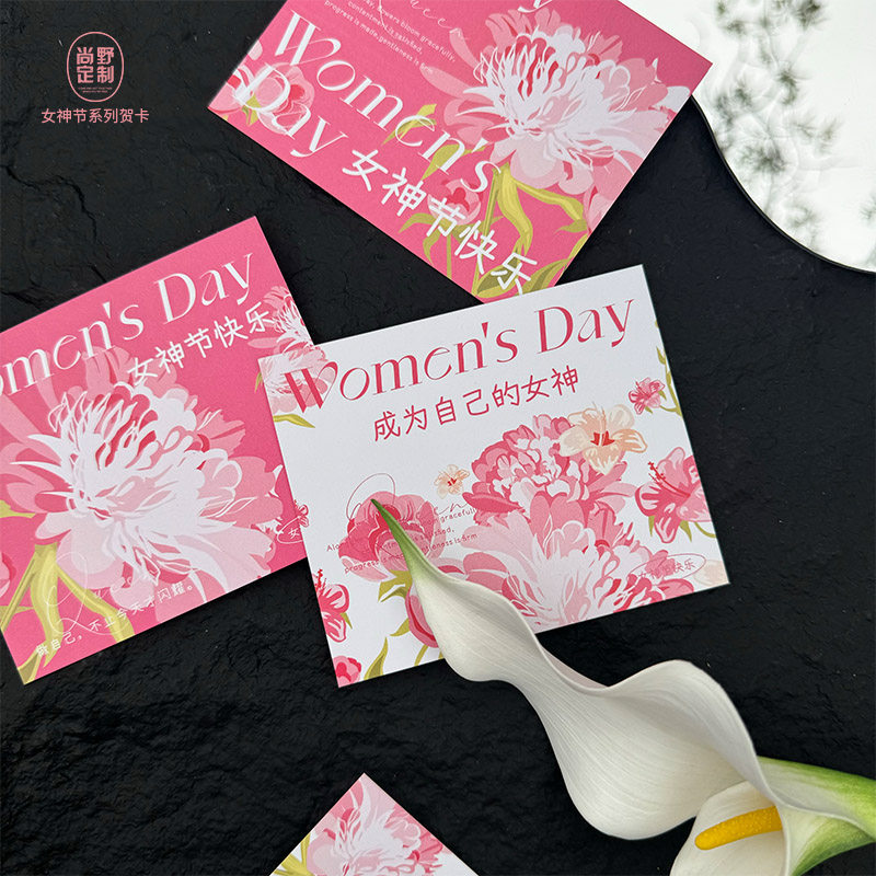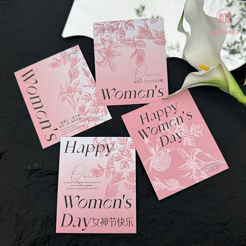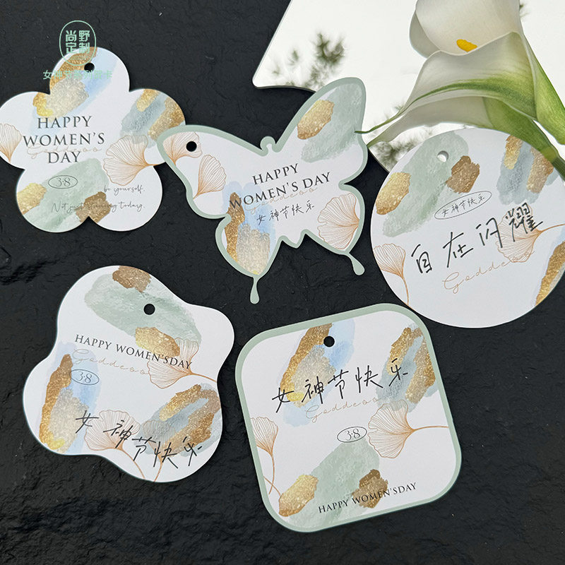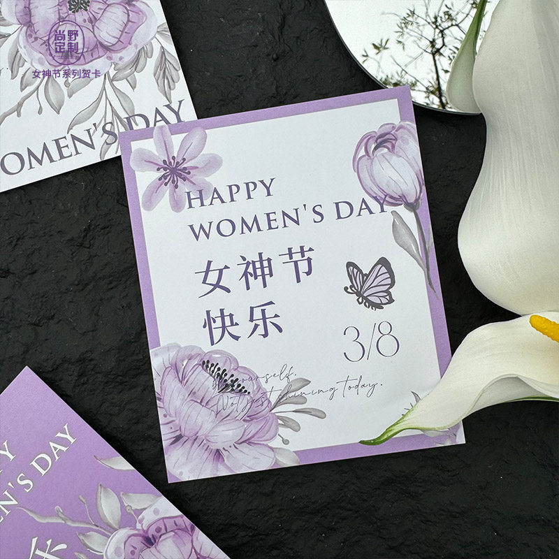 三八妇女节卡片高级感38女神节贺卡手绘紫色鲜花伴手礼装饰吊牌