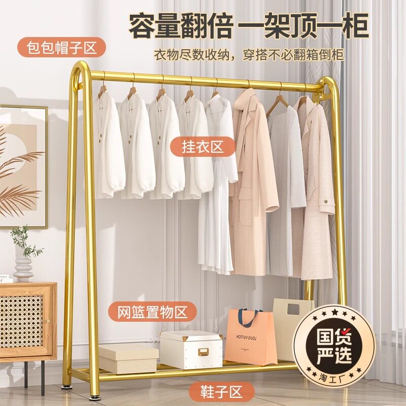 衣架落地卧室挂衣架家用室内移动晾衣架收纳简易衣帽架双层承重