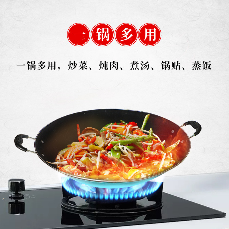 炊大皇铁锅家用无涂层不锈炒锅燃气灶专用炒锅炒菜锅平底锅极铁锅