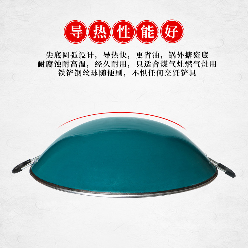 陆川铁锅无涂层老式生铁锅家用炒锅传统双耳锅尖底锅燃气灶煤气用