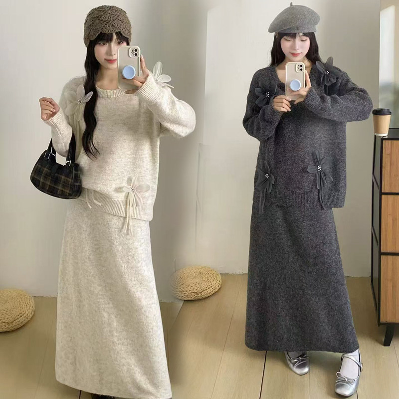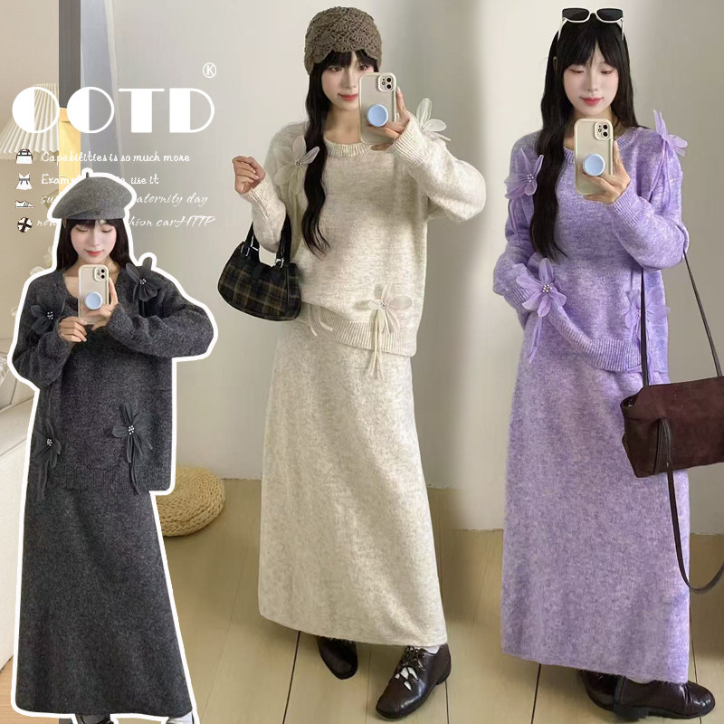 婧麒孕妇装冬装2025新款高级孕妇套装孕期洋气毛衣卫衣时尚半身裙