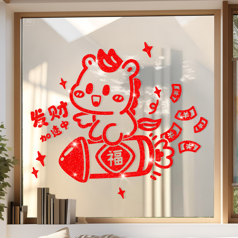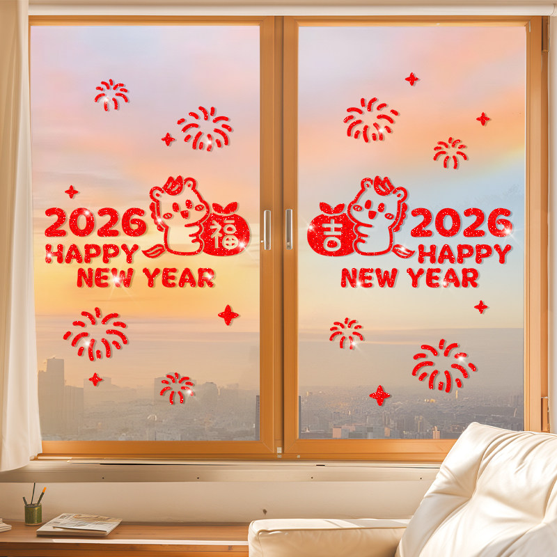静电贴纸2026新年橱窗贴氛围布置马年春节店铺装饰玻璃贴窗花贴画