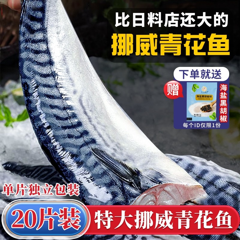 青花鱼挪威进口鲭鱼青占鱼新鲜冷冻盐渍青花鱼片深海鱼鱼肉鲅鱼