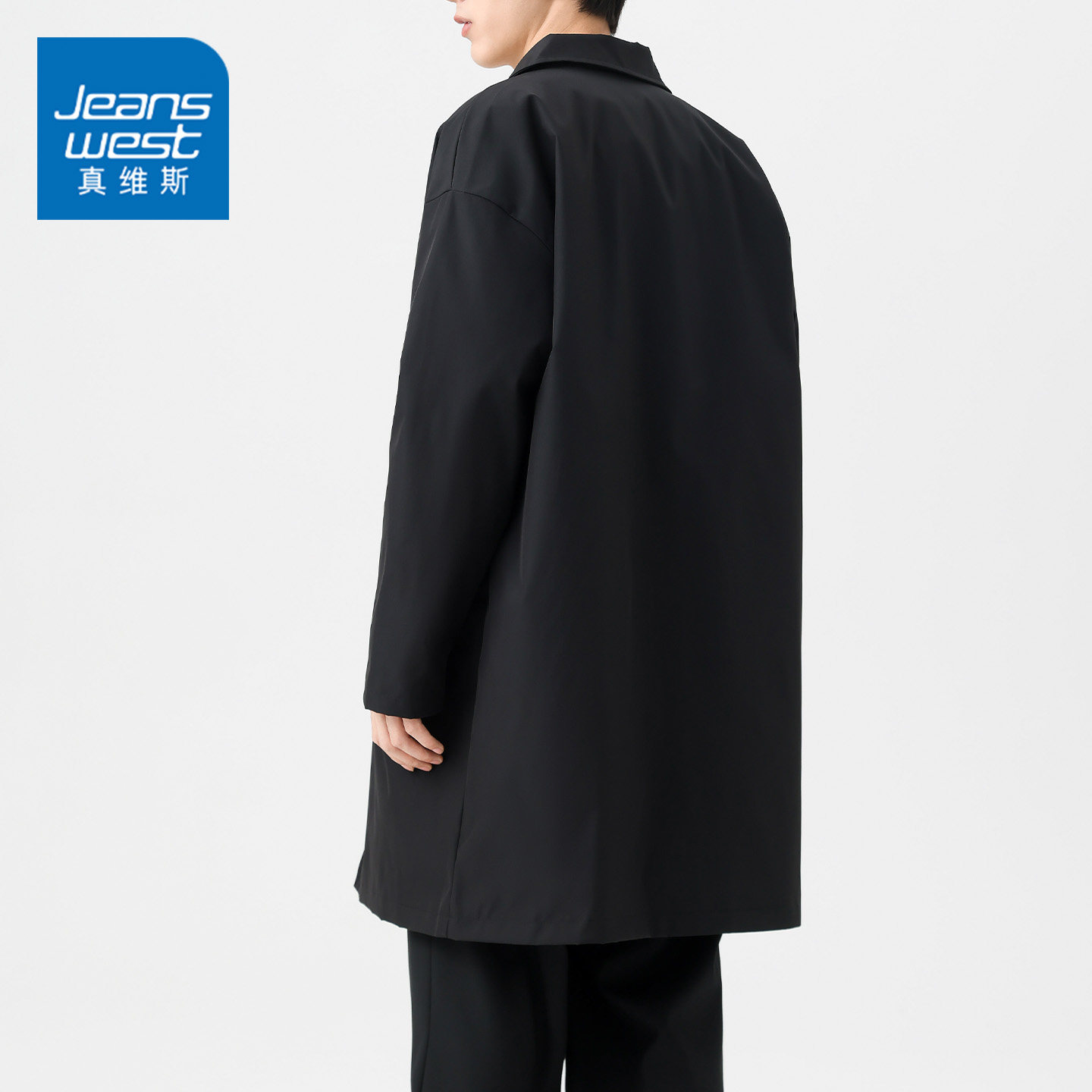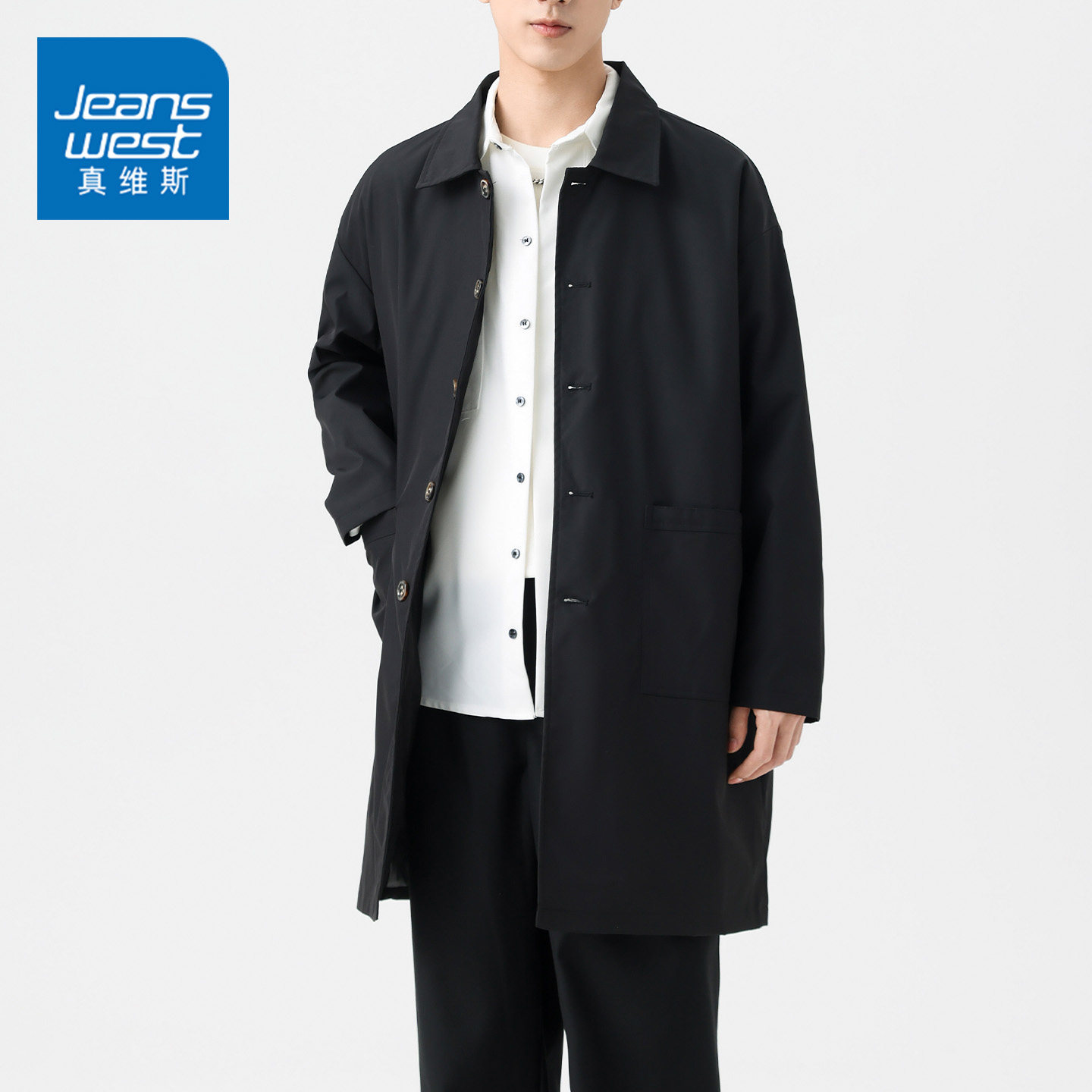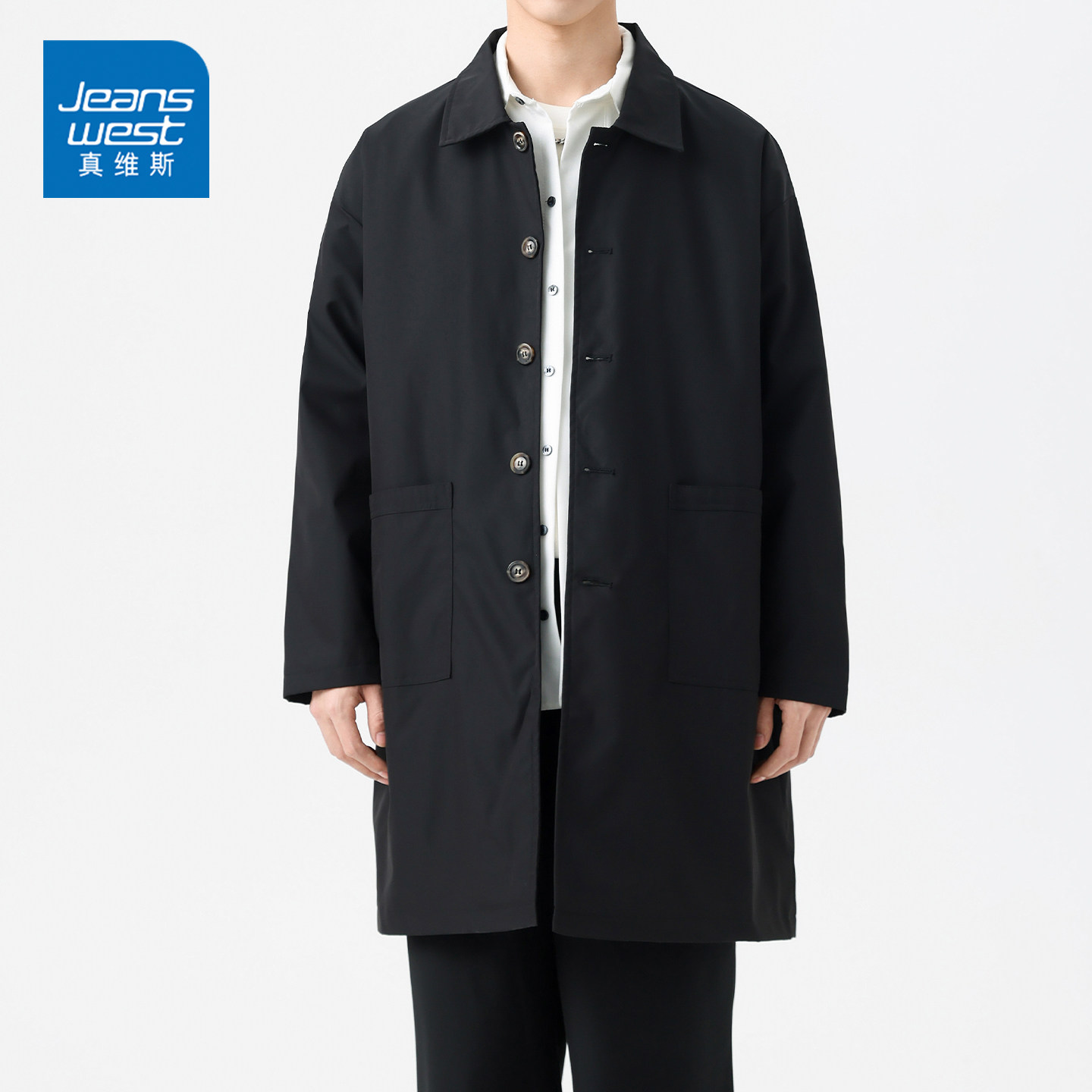 GQ真维斯秋冬季新款宽松翻领风衣男士中长款复古简约青年休闲外套