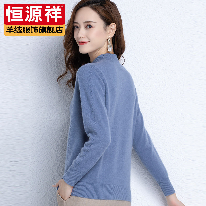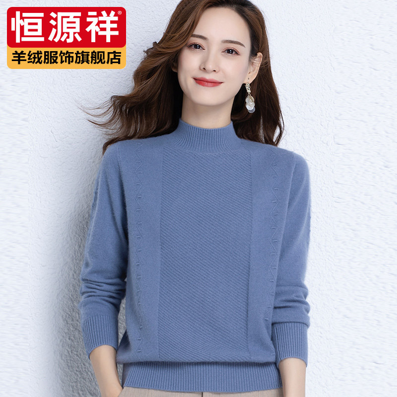 恒源祥羊毛衫女式毛衣新款半高领毛线衣春秋官方正品针织衫打底衫