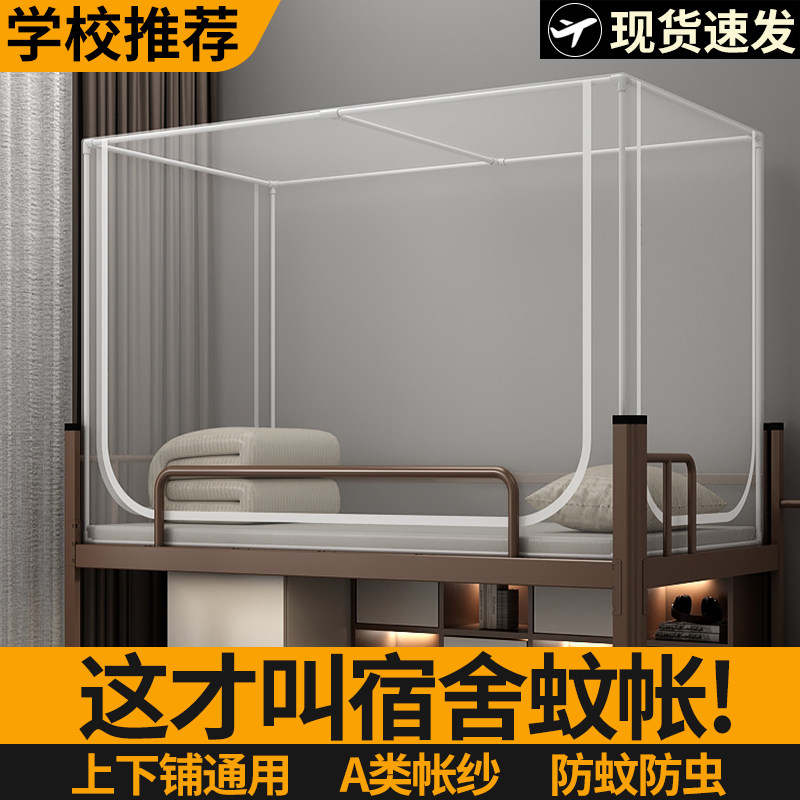 可伸缩蚊帐学生宿舍专用上下铺单人上铺防尘顶蒙古包下铺防蚊加粗