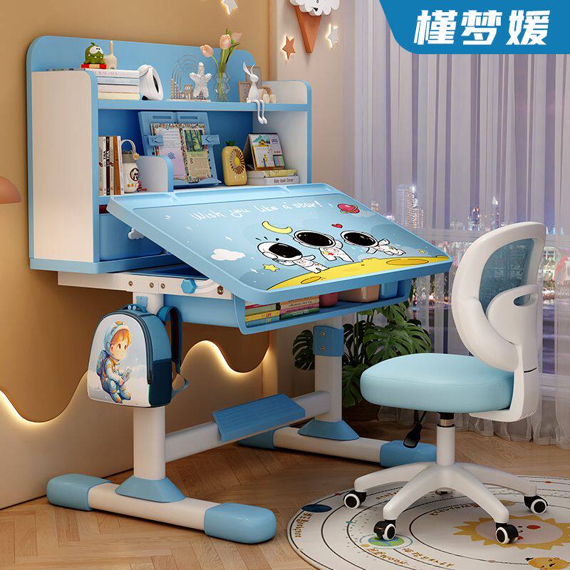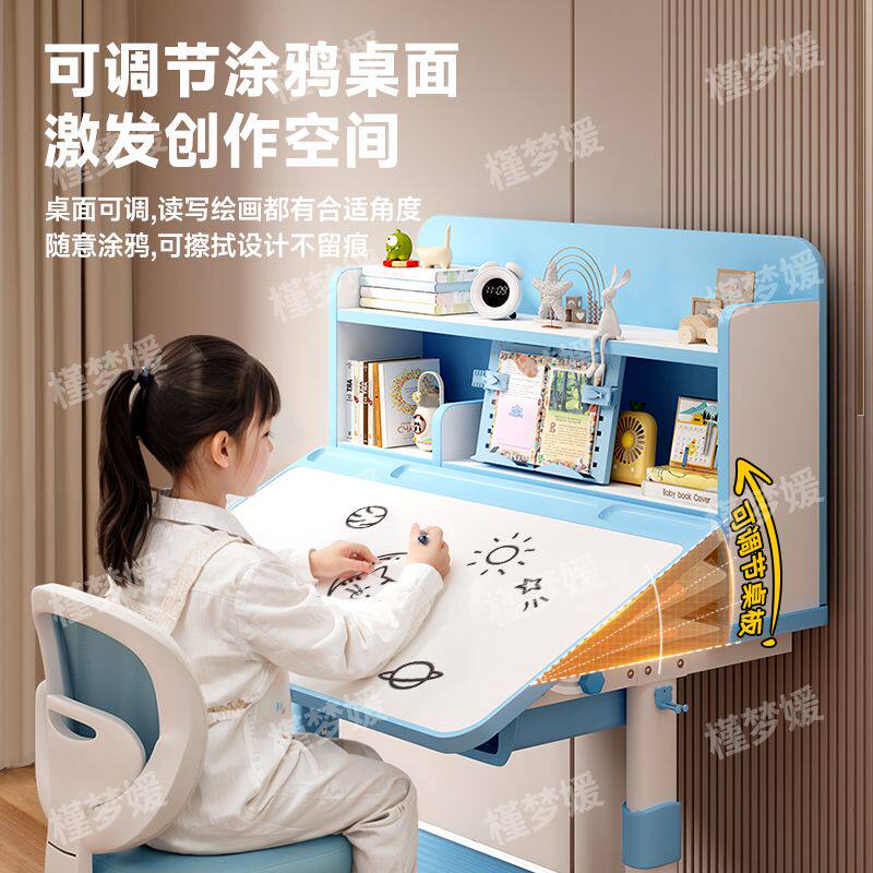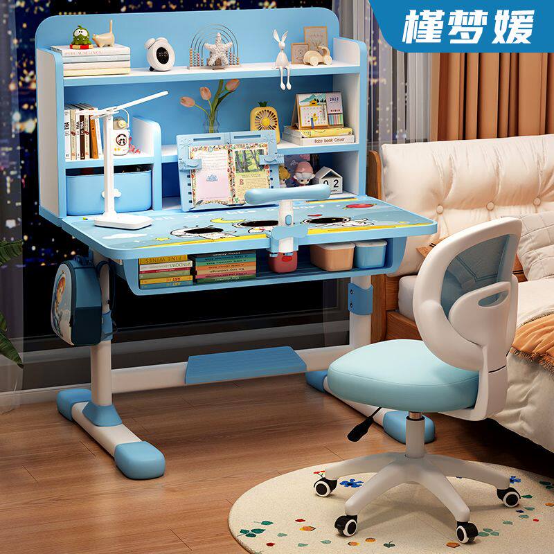 d儿童学习桌书桌书架组合一体桌可升降学习桌椅学生写作业桌椅套