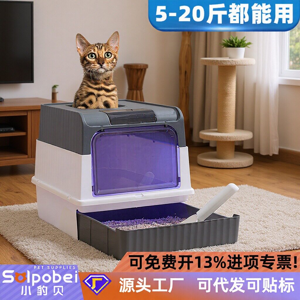 猫砂盆顶入式紫外线杀菌抽屉猫厕所超大空间全封闭猫沙盆宠物用品